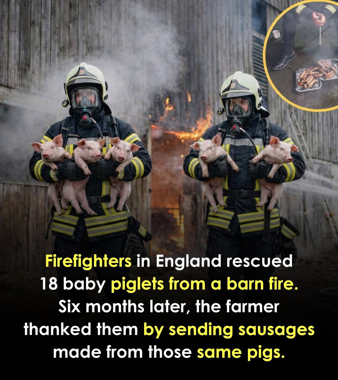 In February 2017, firefighters in Wiltshire rescued 18 piglets and two sows from a barn fire involving 60 tons of hay. Months later, farm manager Rachel Rivers thanked the Pewsey Fire Station crew by gifting them sausages made from those same pigs, explaining they were always meant for meat production
