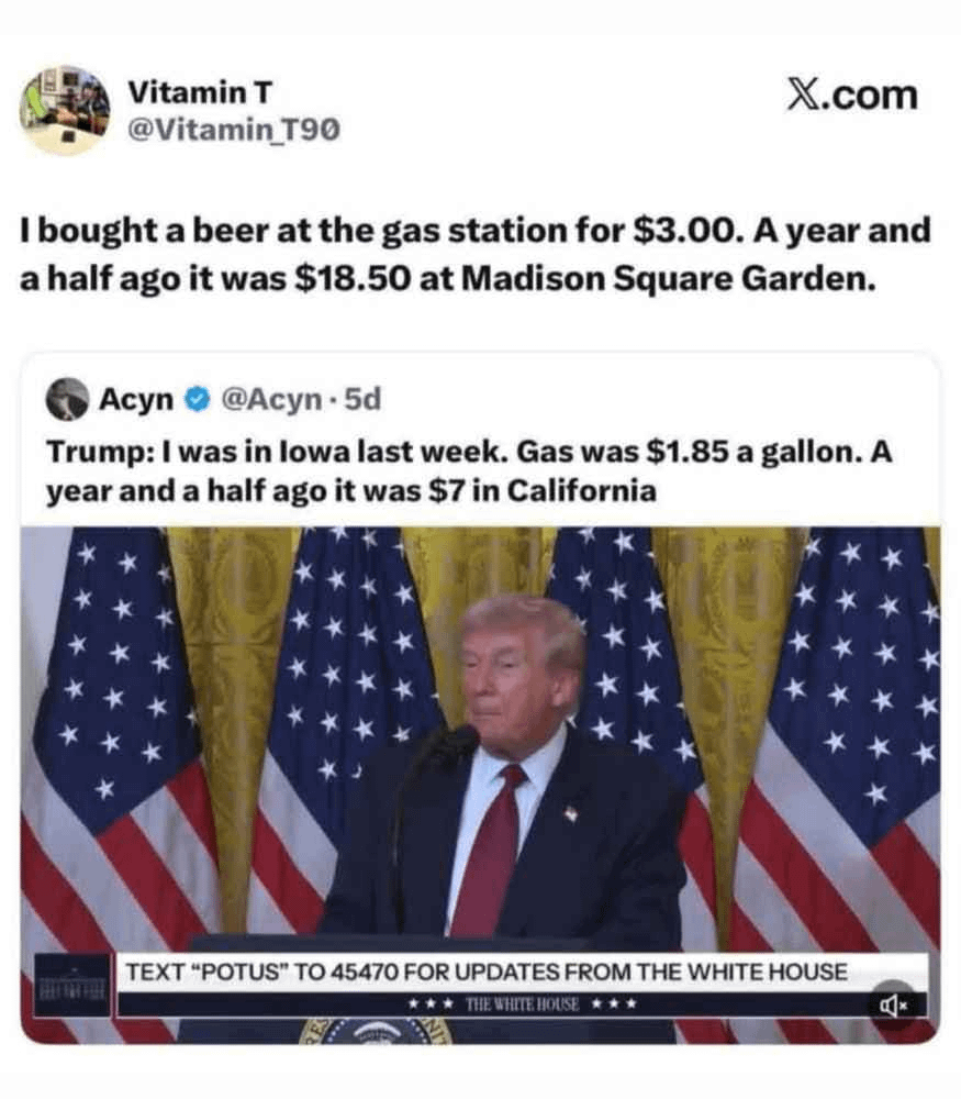 He really thought he did something with that gas price comparison
