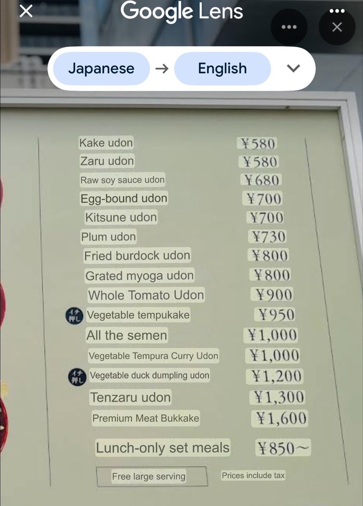 • Travelling and translating menus in japan