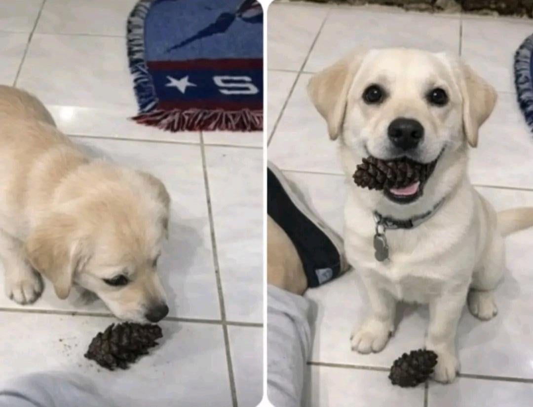 When I’m upset my dog goes outside and tries to bring me things, today she brought me pine cones
