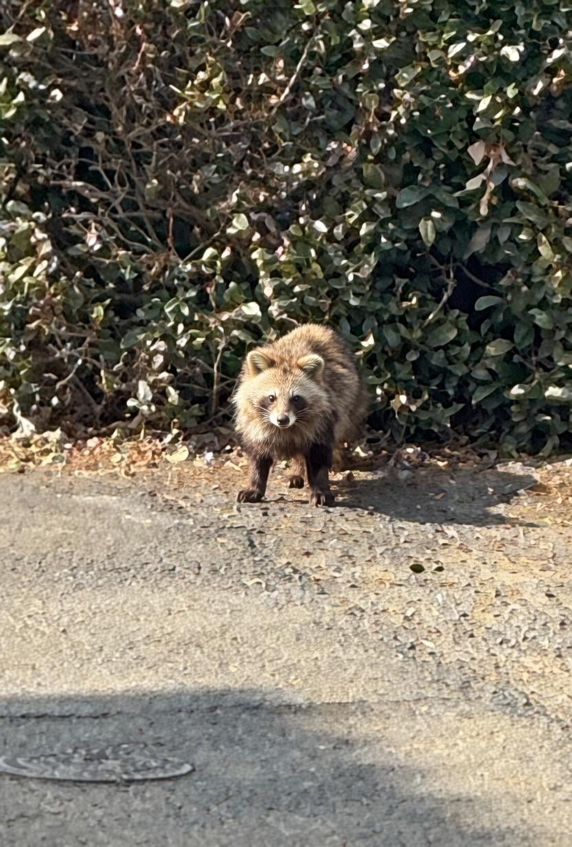 Bumped into this racoon dog in my driveway. After a stare-out he made a sharp disappearance.