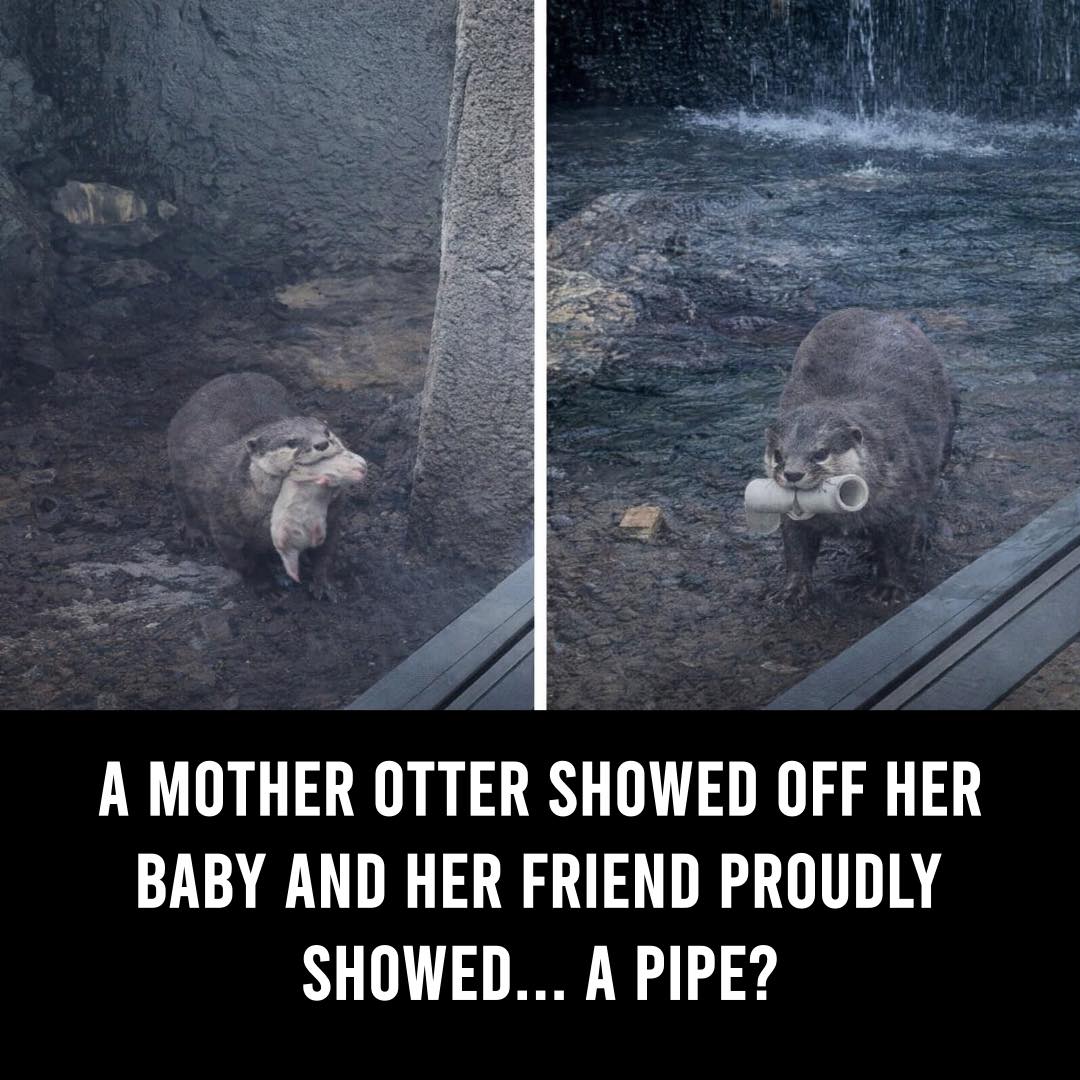 A zoo in Japan had the cutest and funniest moment when a mother otter proudly showed off her newborn to visitors — and right beside her, another otter proudly held up… a random pipe One had a baby, the other had a pipe — but both showed them off with the exact same pride.