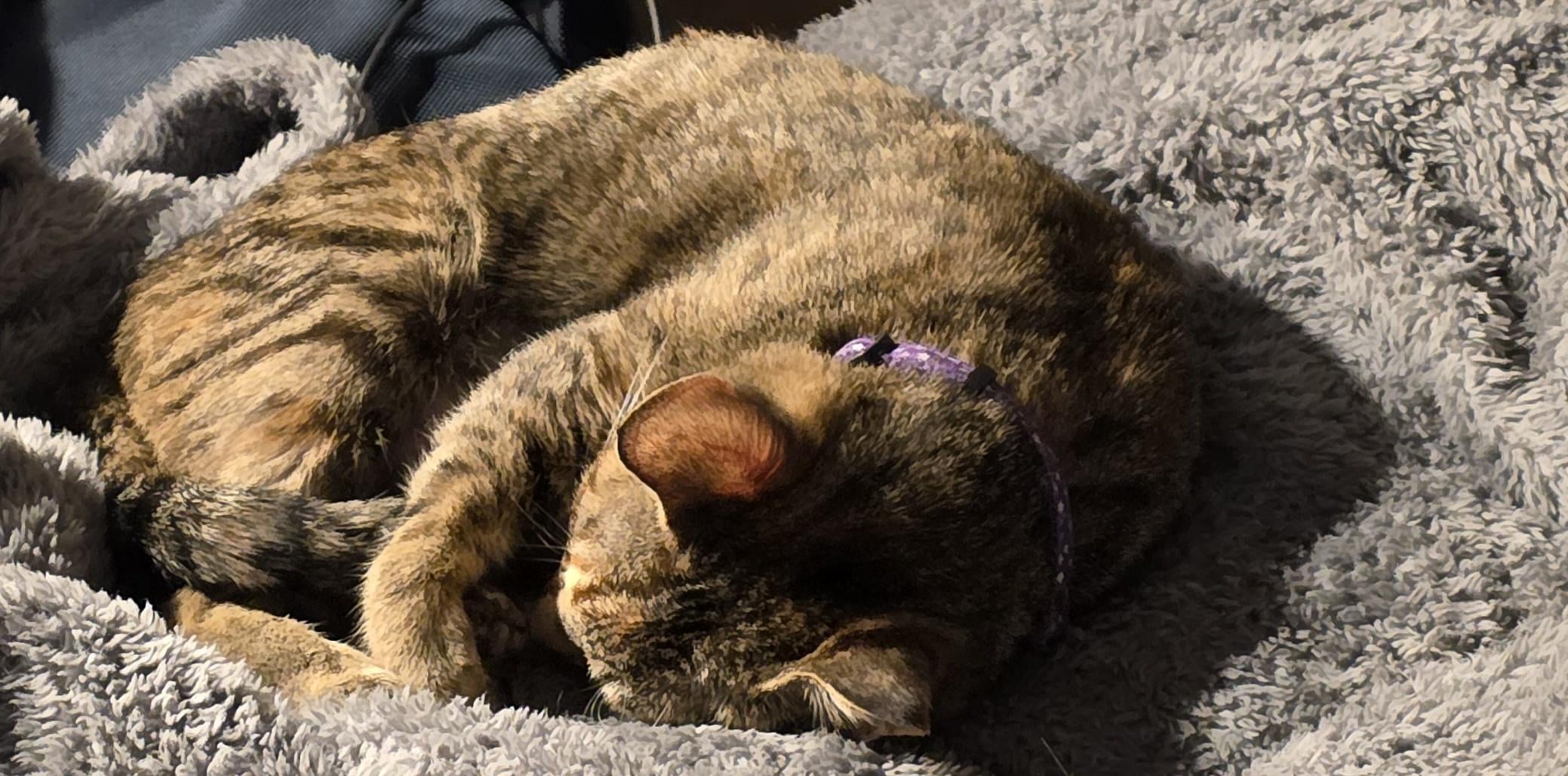 Macciatto after her vet visit. She is very sleepy 🥰