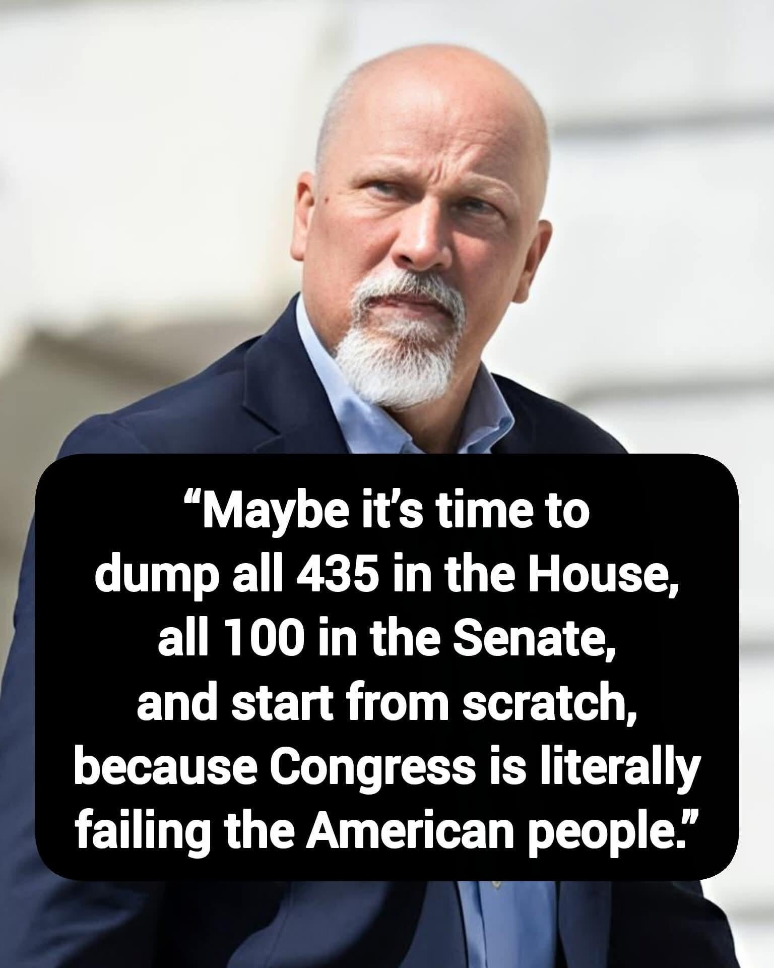 Rep. Chip Roy: “Maybe it’s time to dump all 435 in the House, all 100 in the Senate, and start from scratch because Congress is literally failing the American people.” Thoughts?
