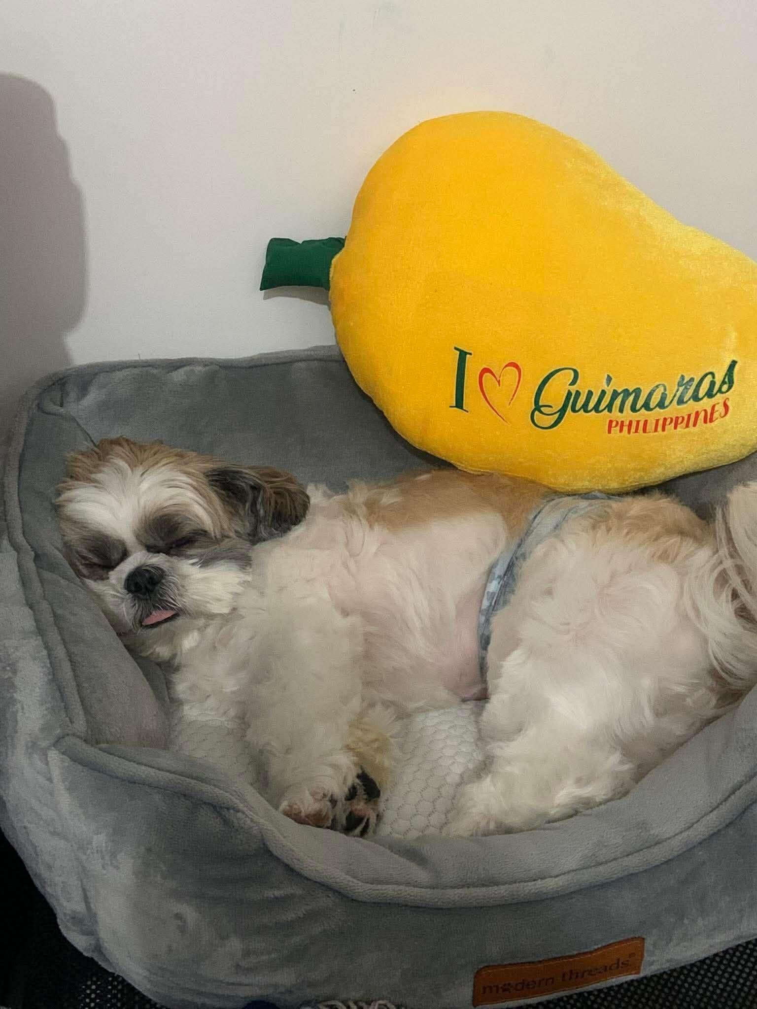 Just me, my bed, and my giant mango 🥰🐾