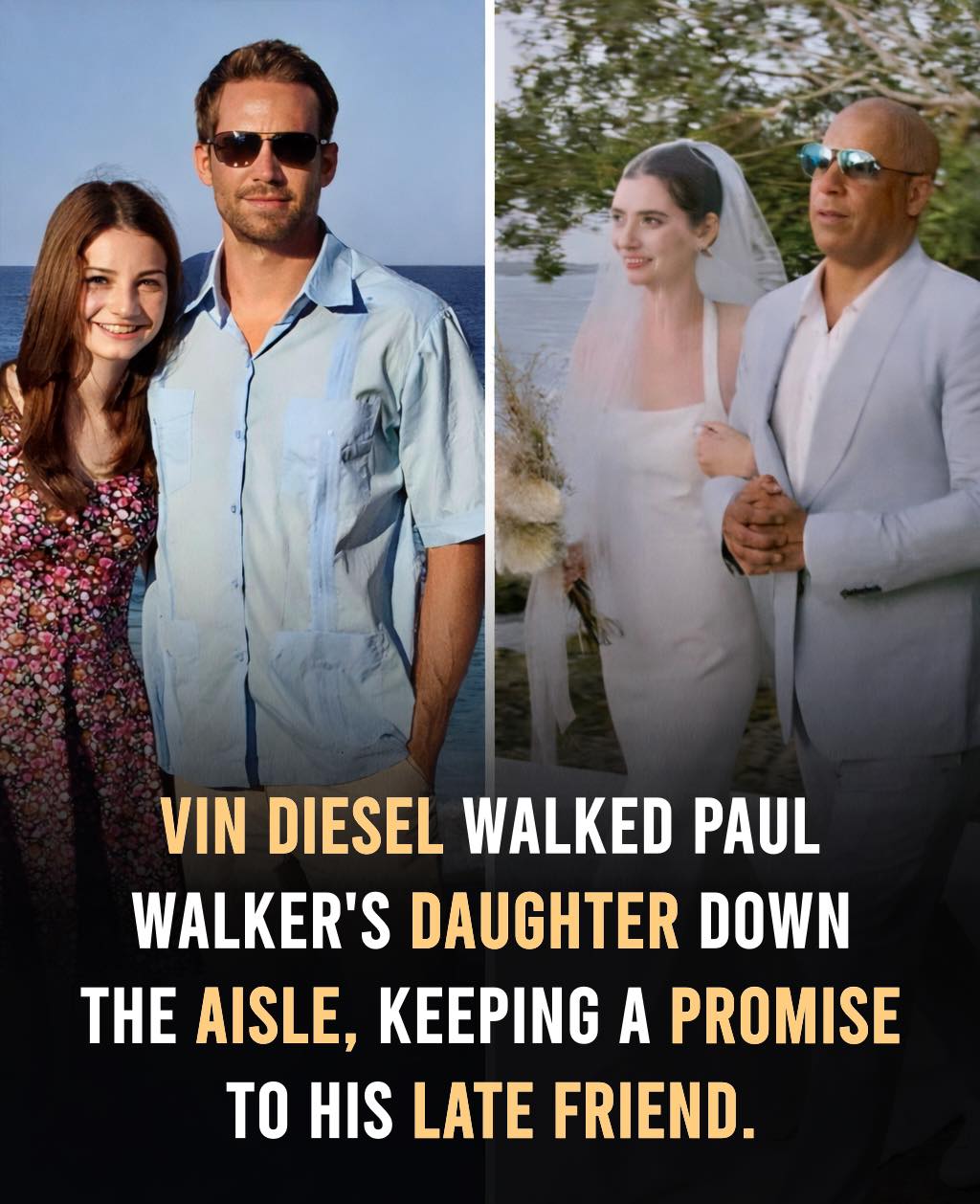 In 2021, Meadow Walker, daughter of Paul Walker, married in an intimate beach ceremony. With her father gone, Vin Diesel — his close friend and her godfather — walked her down the aisle, honoring their bond.
