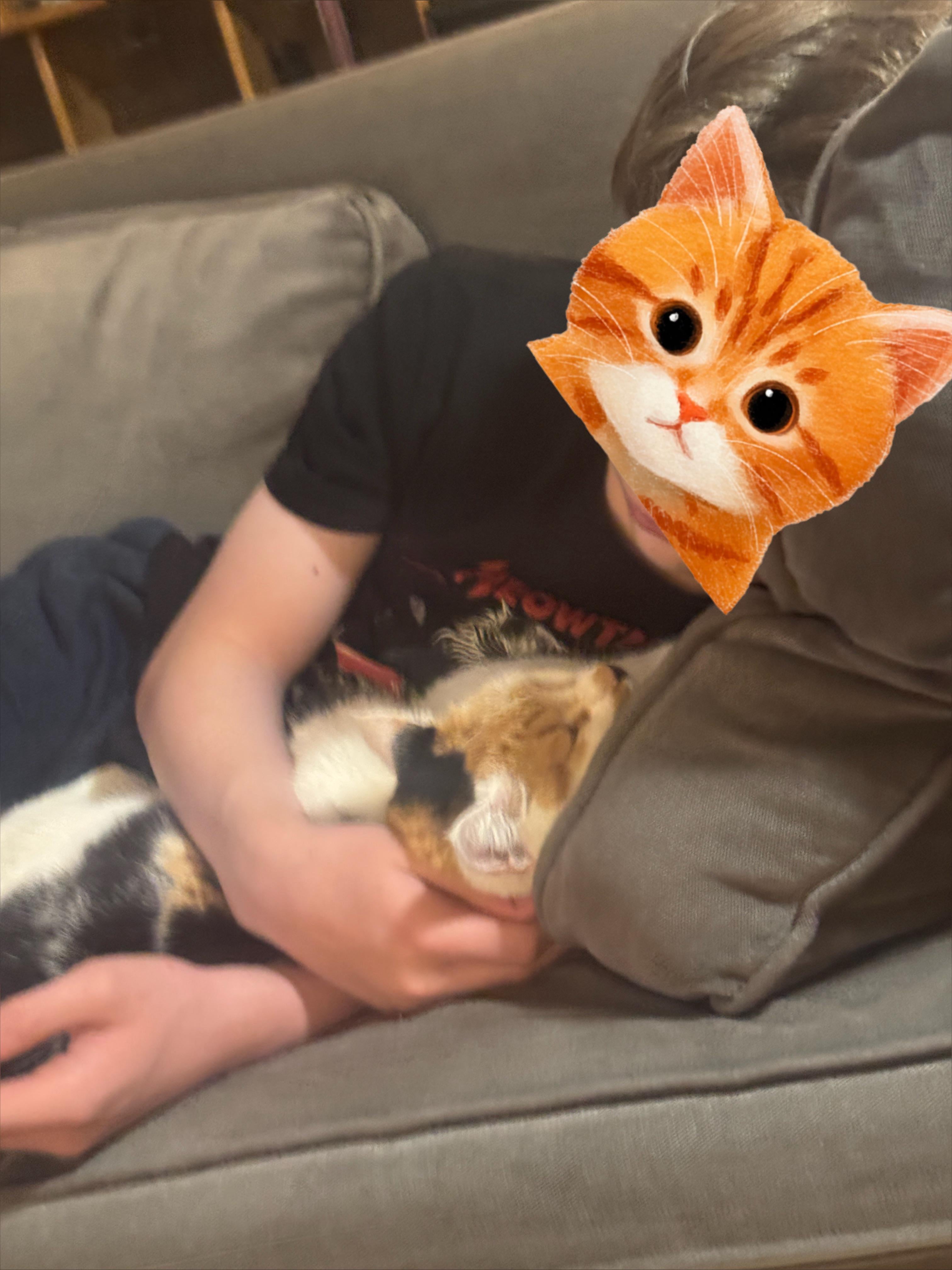 • My teenager and his cat (I can hear her purring from my chair)
