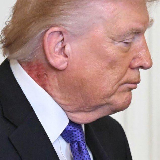 Trump was spotted with a large red rash on his neck earlier today.