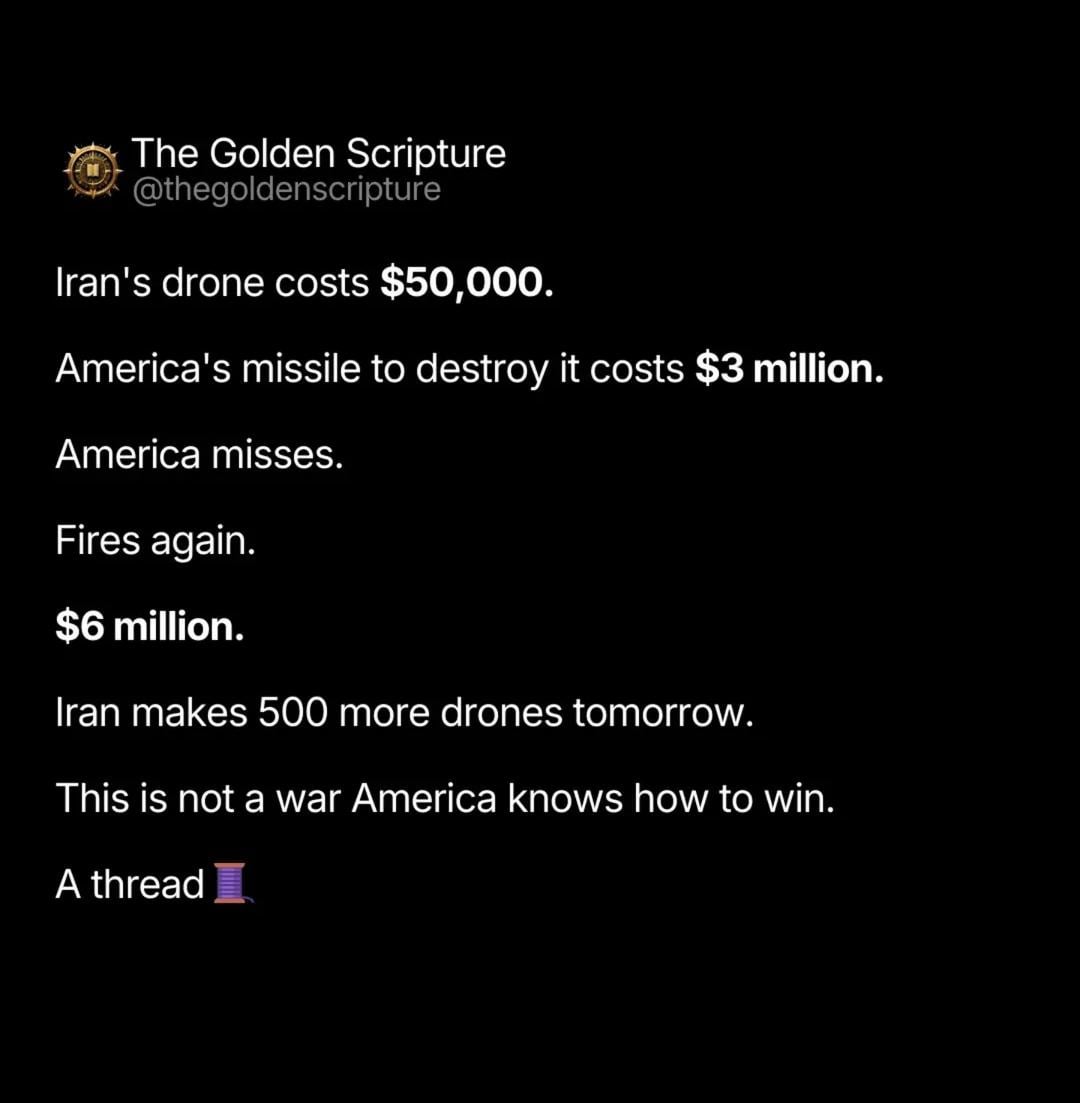 Iran: makes 500 more tomorrow. America: $6 million poorer.