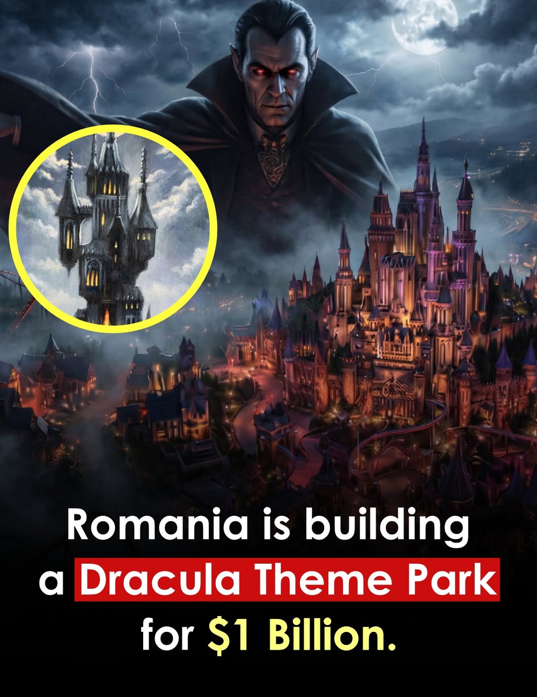 Romania is planning a massive Dracula-themed park called DraculaLand near Bucharest. The privately funded project could cost over €1 billion and feature more than 40 attractions across multiple themed zones. Plans also include hotels, a large arena, and a water park and spa. If completed, the project aims to attract about 3 million visitors a year and create thousands of jobs.