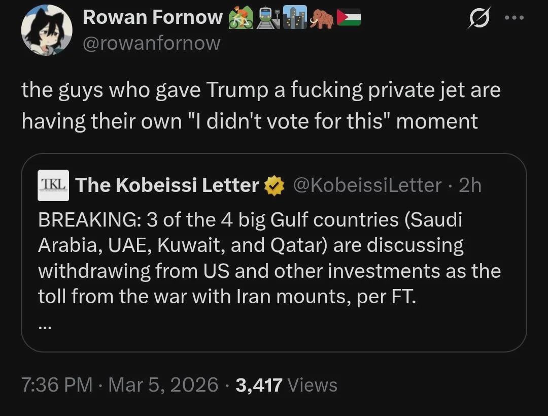 • Even the guys who bribed Trump with a private jet are getting screwed over