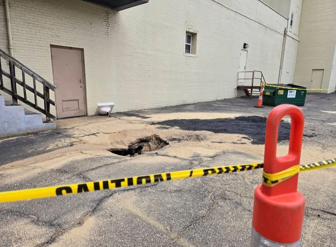 A sinkhole opened up in a parking lot in my hometown.