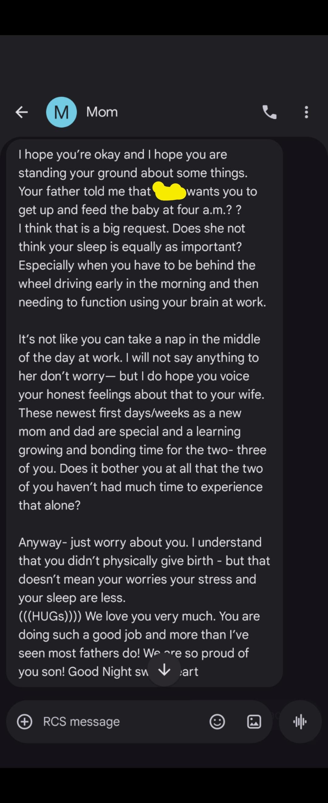 AIO:My MIL texted my husband this about me asking him to help with our newborn at 4am