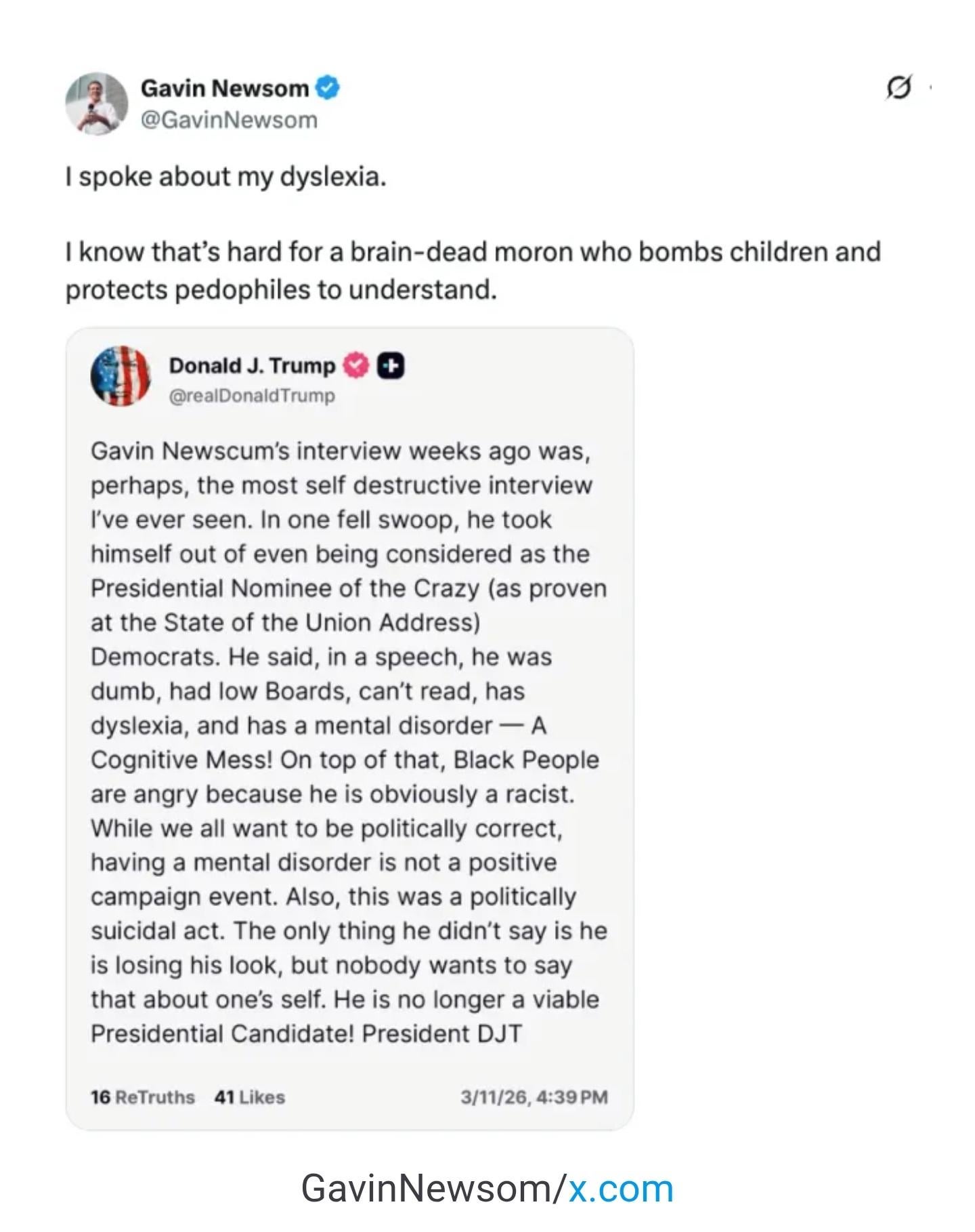 Newsom’s dyslexia stills "trumps" the ignoramus moron