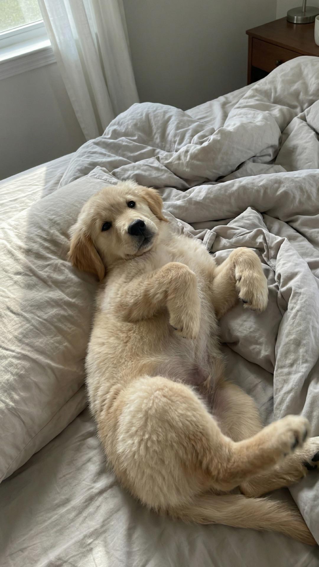 • he thinks he owns the bed now