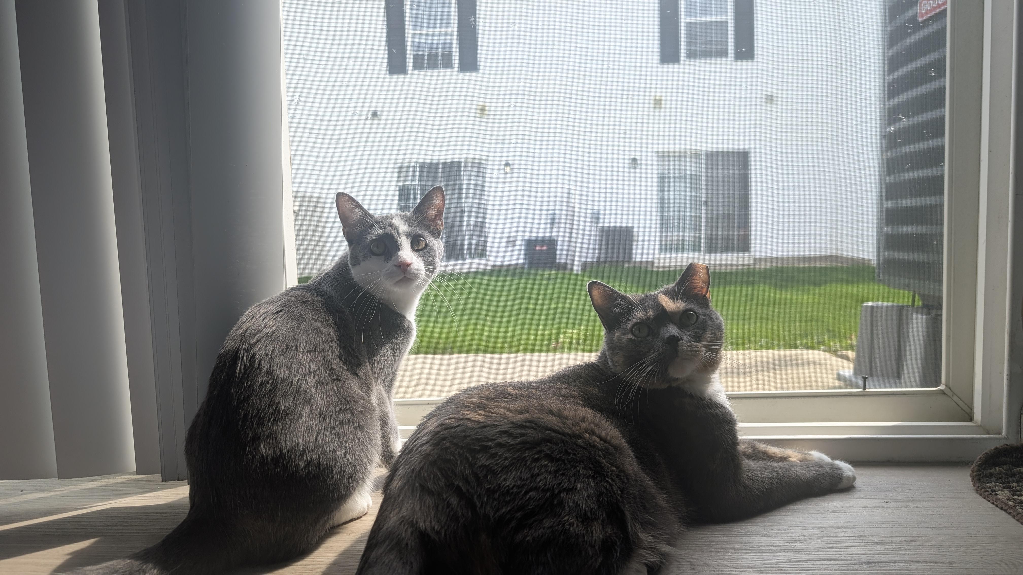 Kitty sisters watching birdies