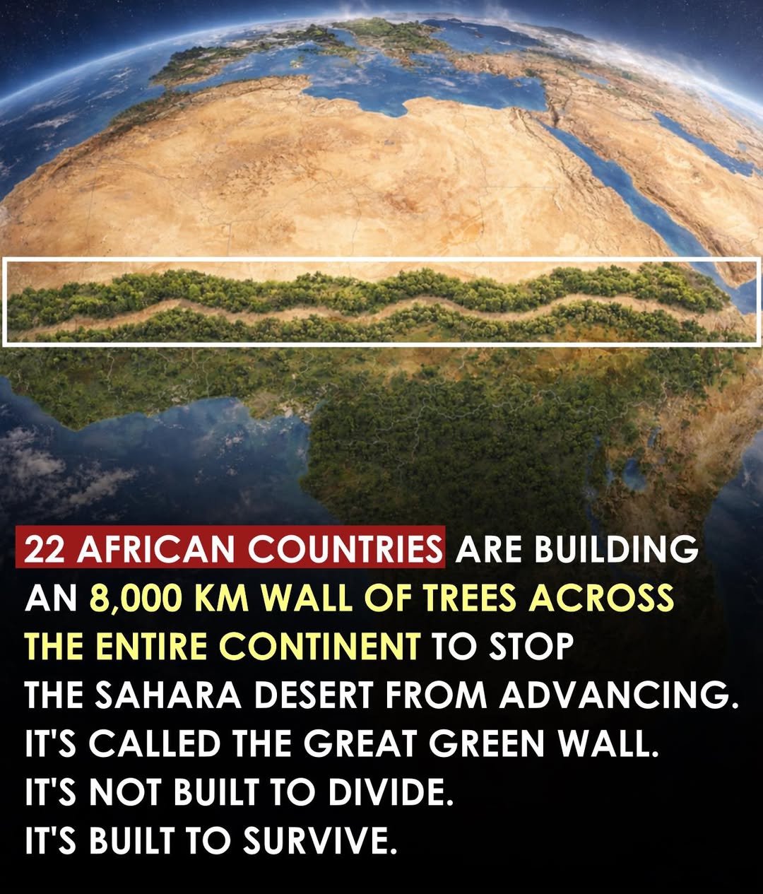 22 African countries are working together on the Great Green Wall It’s a massive project aiming to restore land across the Sahel with an 8,000 km belt of trees, plants, and vegetation to help slow desertification and protect communities from the Sahara’s spread But it’s not just about planting trees — it’s about saving farmland, water, jobs, and livelihoods That’s why many call it one of the most powerful environmental missions ever: not built to divide… built to survive