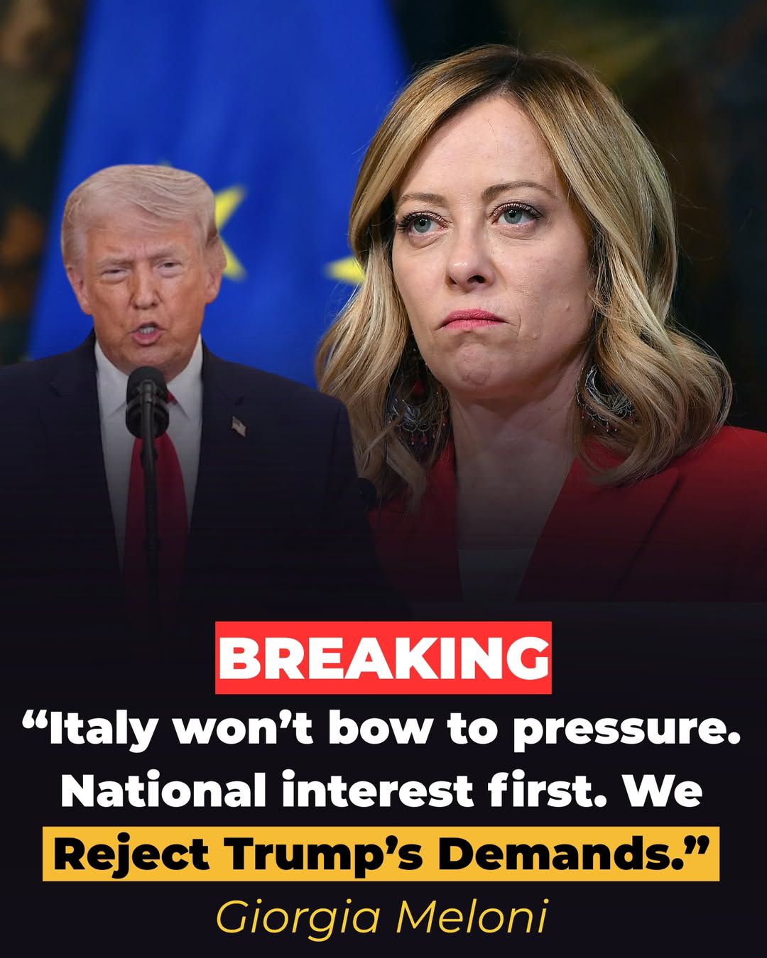 Her message was direct. Italy will not act under pressure, will openly disagree when needed, and will always put national interest first. She also made it clear that on this issue, Italy does not agree with Trump’s position and will not change its stance.