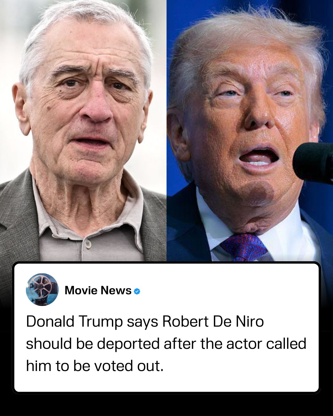After actor Robert De Niro publicly urged voters to reject him at the ballot box, Donald Trump responded by saying the Oscar-winning actor should be deported. The exchange marks the latest clash between Hollywood and the campaign trail, as the 2024 election season continues to heat up.
