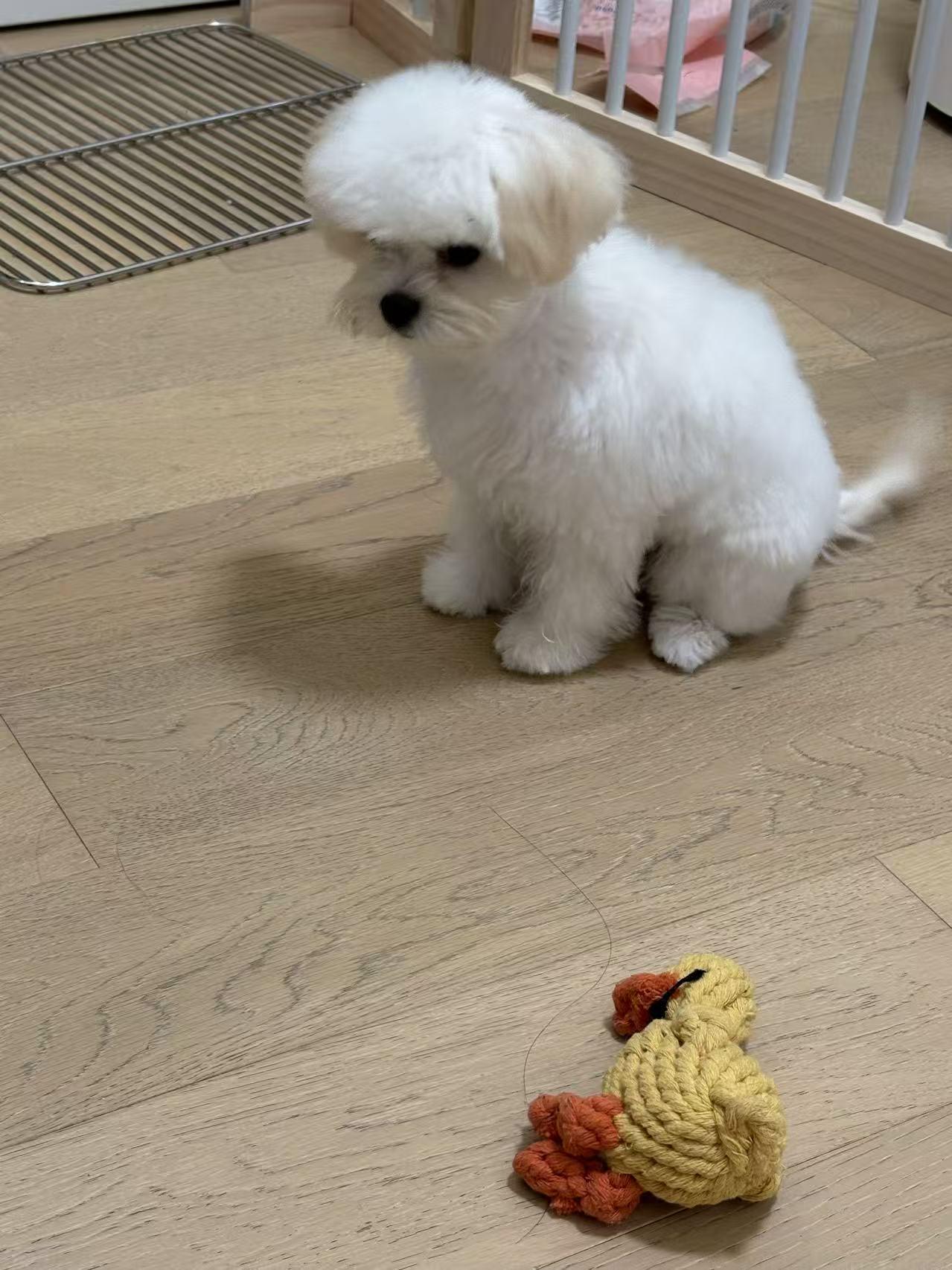 When she gets a new toy, curious yet a bit scared