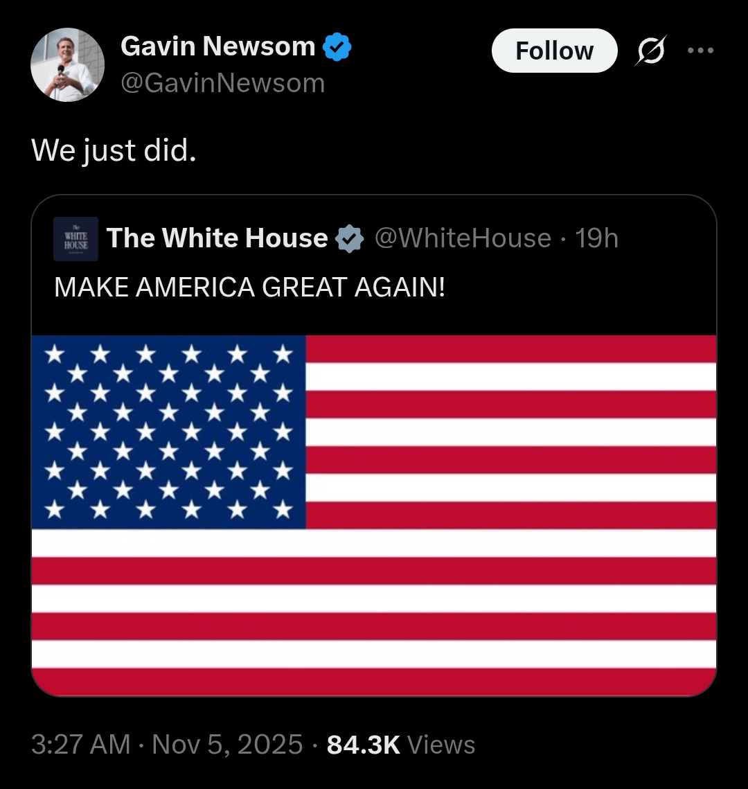Newsom throwing shade.