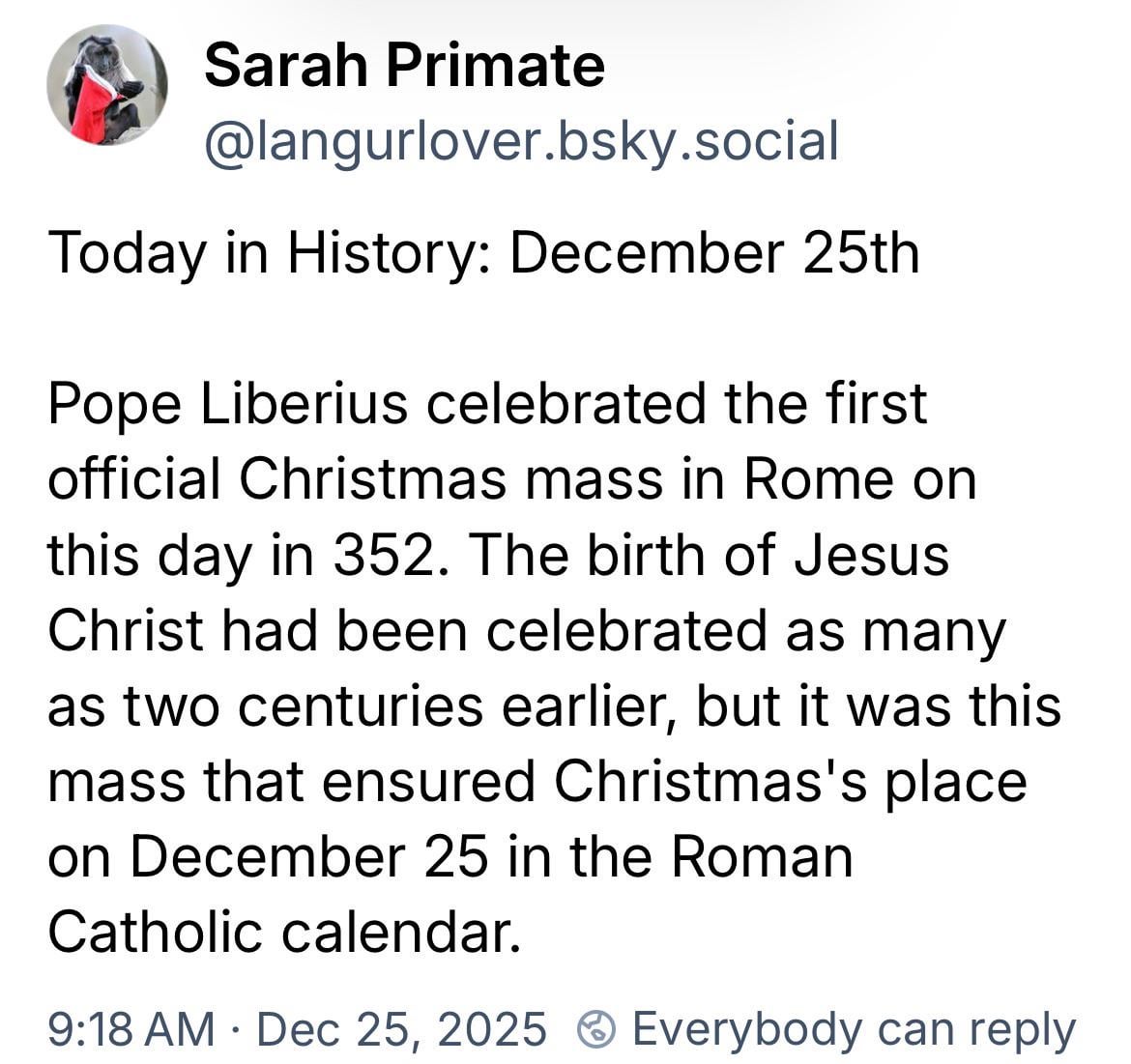 Pope Liberius is the reason for the season?