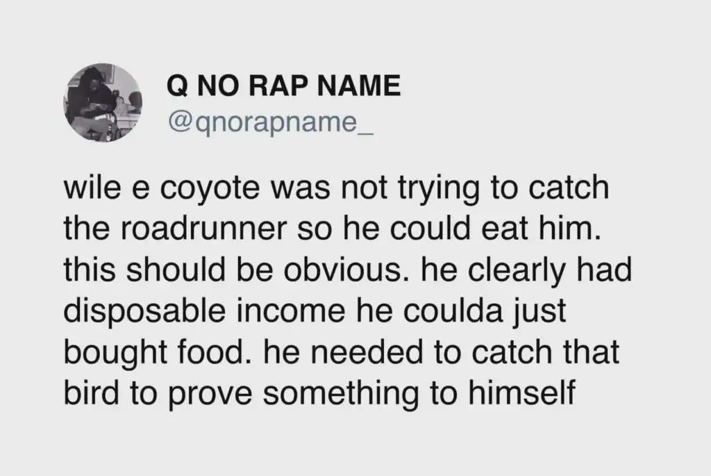 To everyone reading this, stop chasing that roadrunner if you have disposable income. You'll never catch that bird.To everyone reading this, stop chasing that roadrunner if you have disposable income. You'll never catch that bird.0 Comments 0 Shares 144K Views 0 Reviews