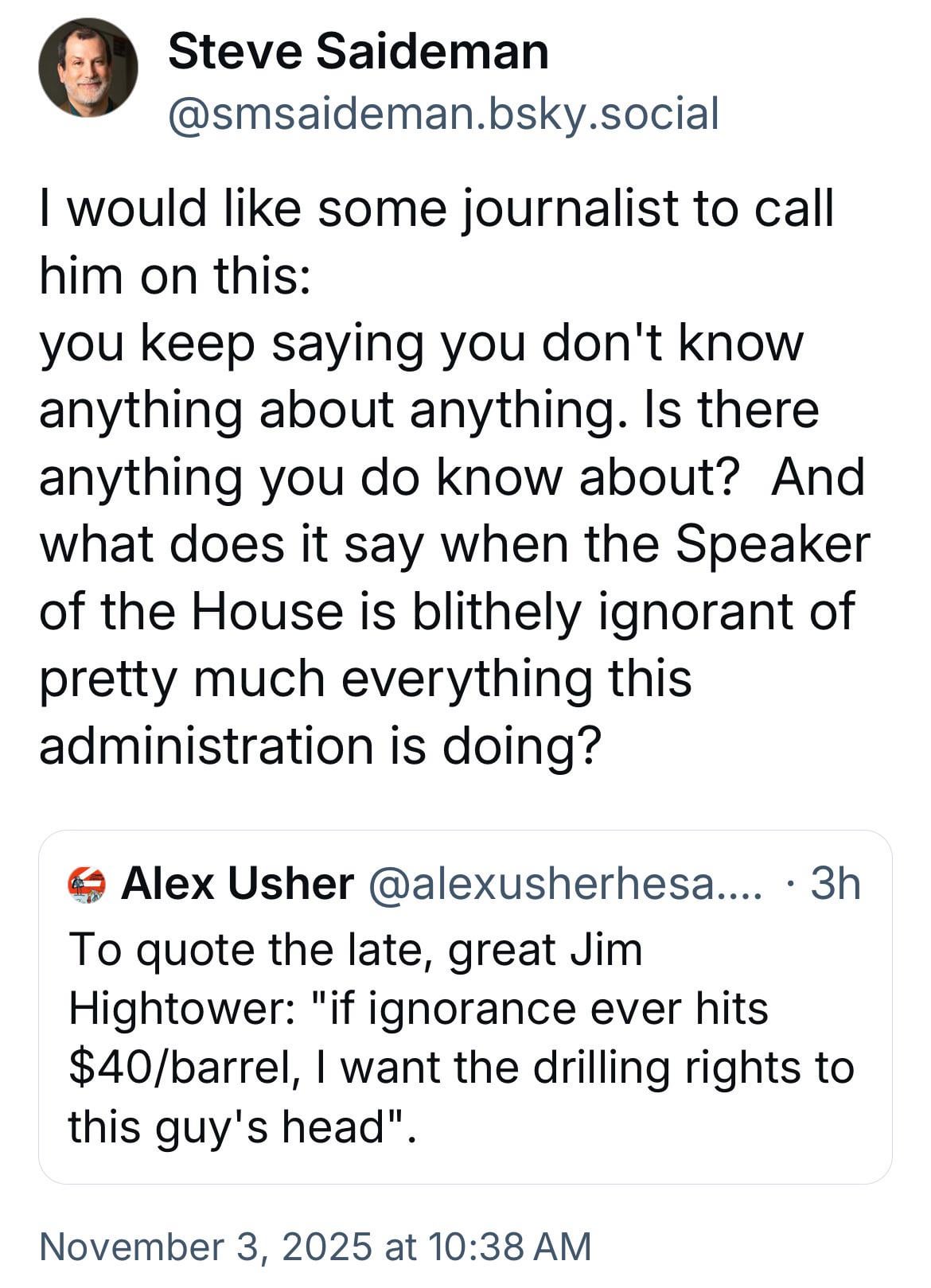 If he really knows nothing, why is he the Speaker of the House?