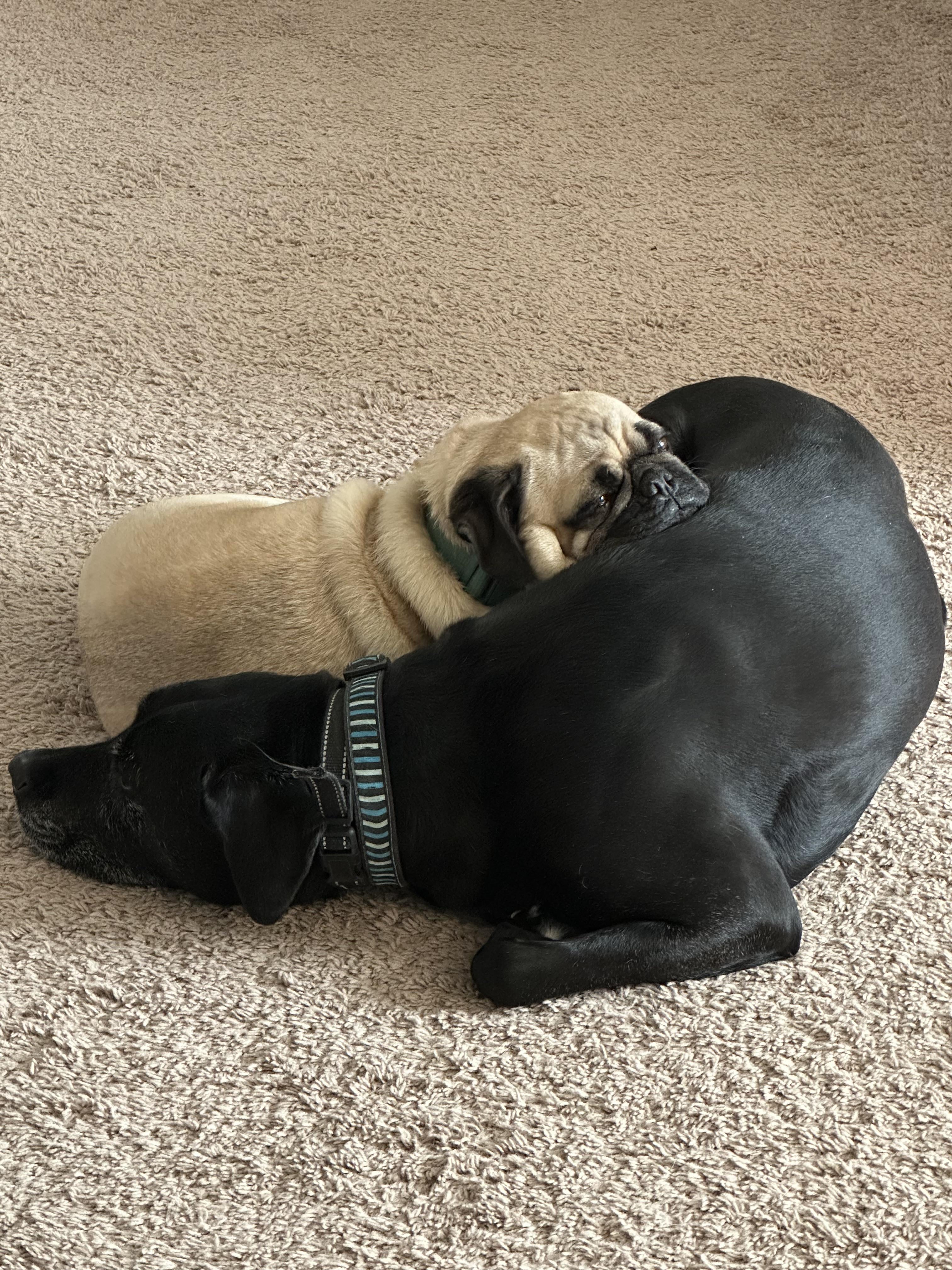 My dogs are cuddle buddies