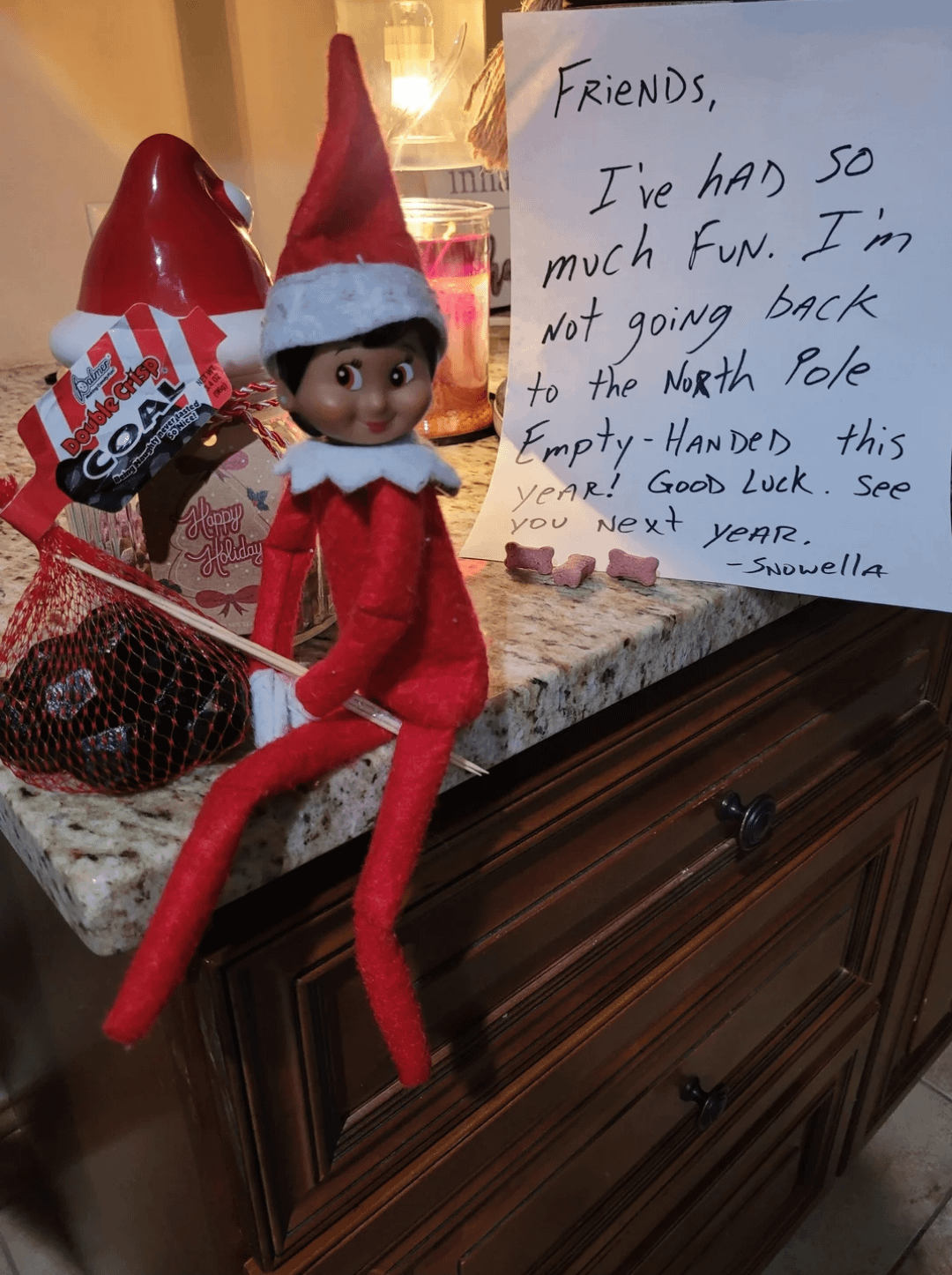 Elf on the shelf heading back to the North Pole