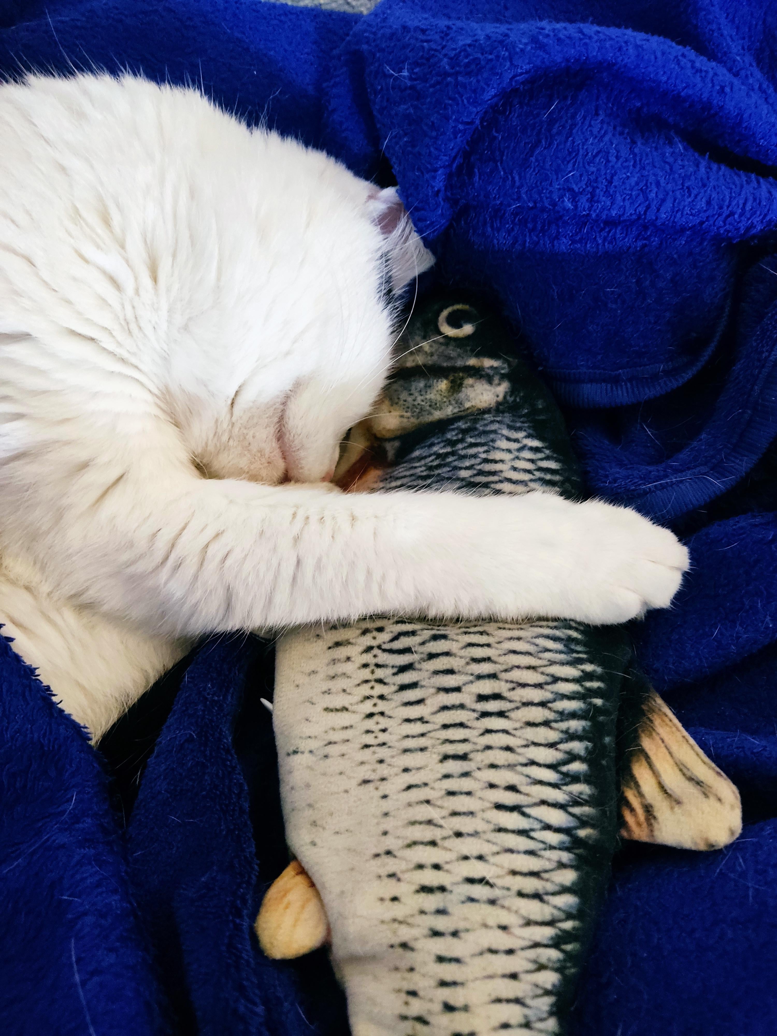 When she's not hugging me, it's her buddy who gets the cuddles 🐠