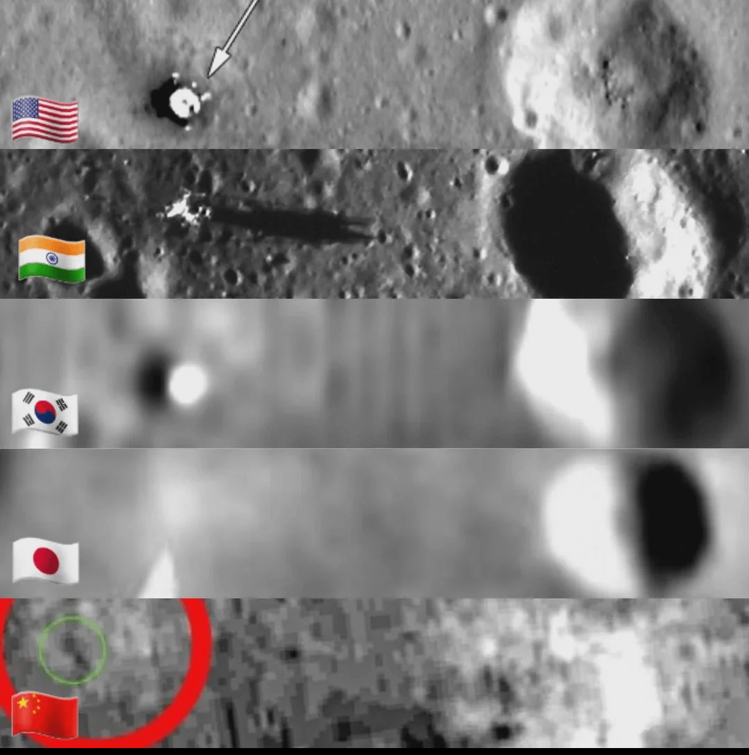 The remains of Apollo 11 lander photographed by 5 different countries, disproving moon landing deniers.