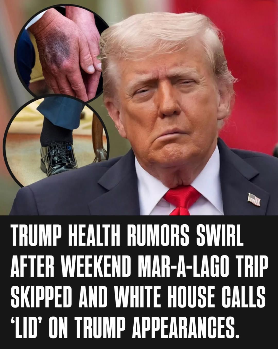 Public appearances in recent months have fueled growing concern. Observers have noted facial drooping on one side, persistent hand bruising, swollen ankles, and increasing signs of fatigue. Medical professionals have publicly speculated these symptoms could point to conditions including chronic venous insufficiency — which the White House has confirmed — or potentially more serious neurological or cardiovascular issues. Trump’s former doctor also revealed a glowing 2016 health statement was dictated by Trump himself, not his physician.