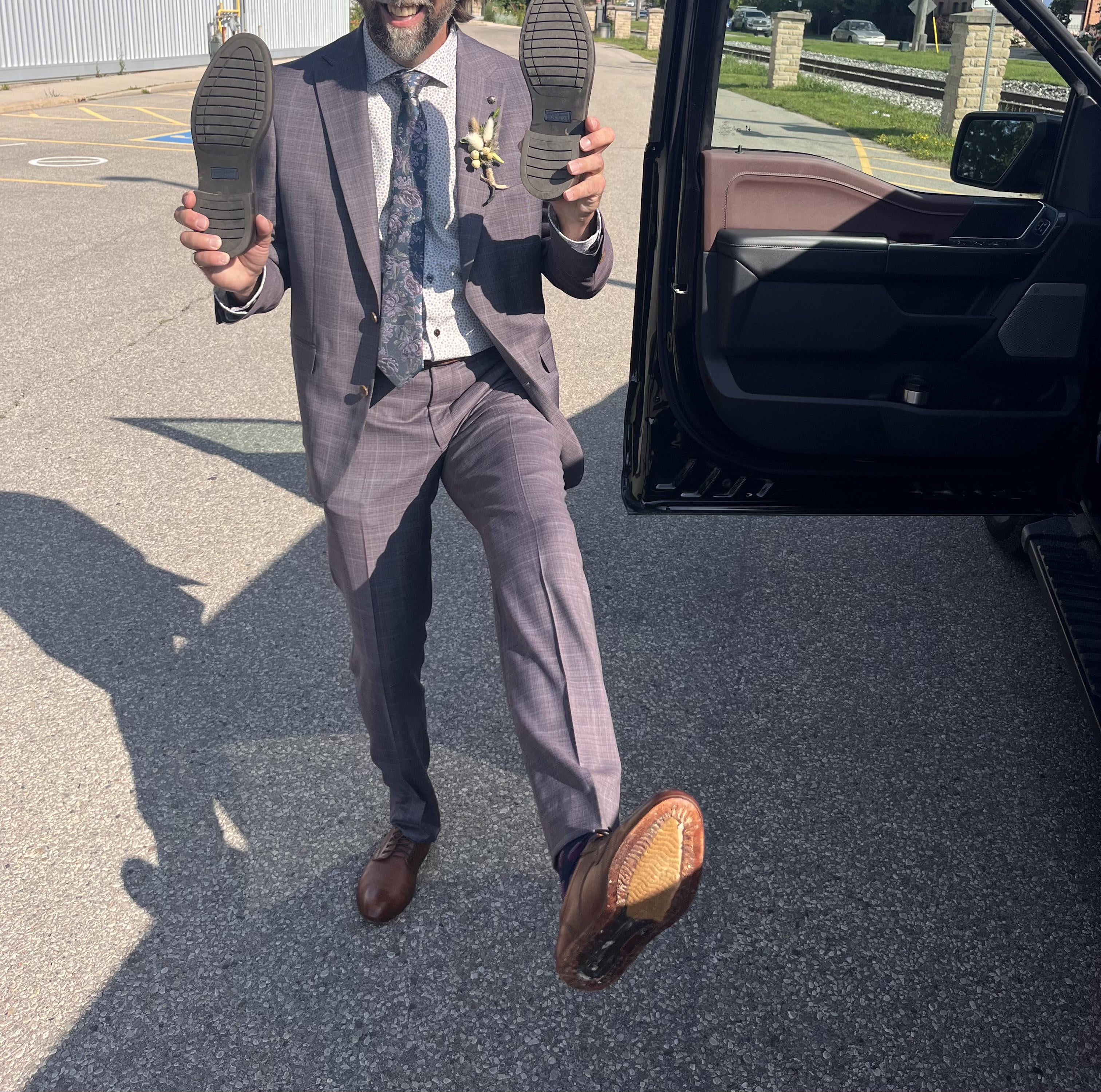 My dad’s shoes fall apart at my sisters wedding.