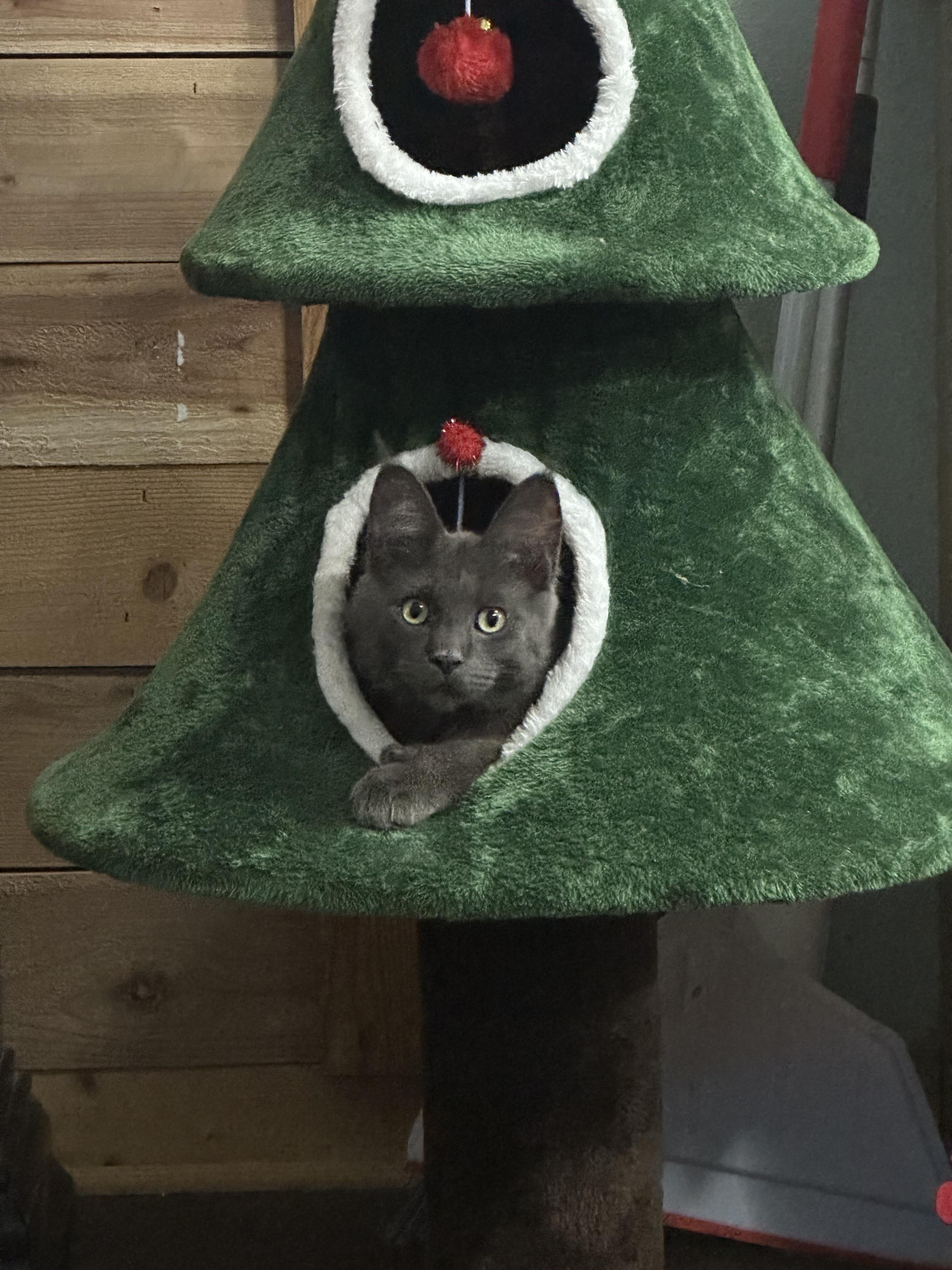 Georgie loving his Christmas tree