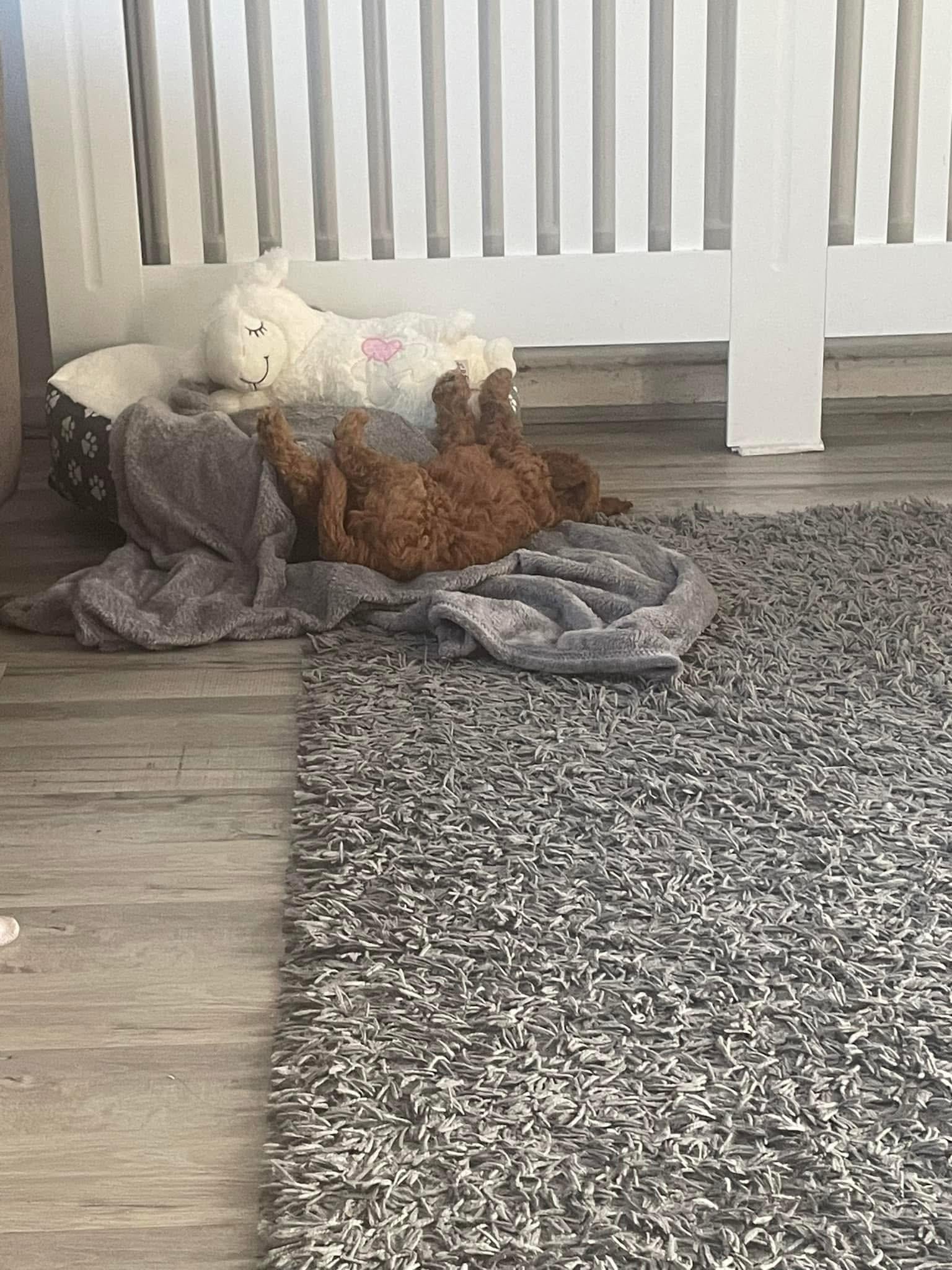 Ruby just loves falling asleep and then falling out of her bed.
