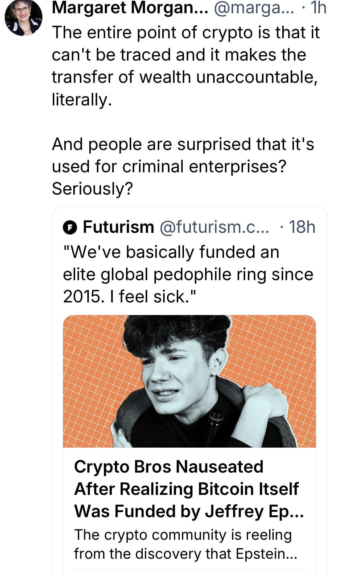 The whole point was that it can’t be traced, so of course criminals promote crypto
