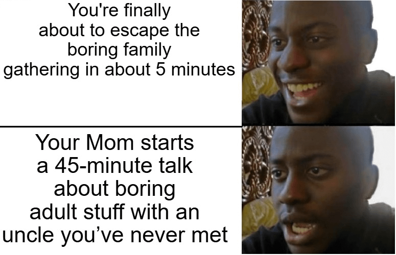 EVERY FREAKING TIME WE'RE ABOUT TO LEAVE