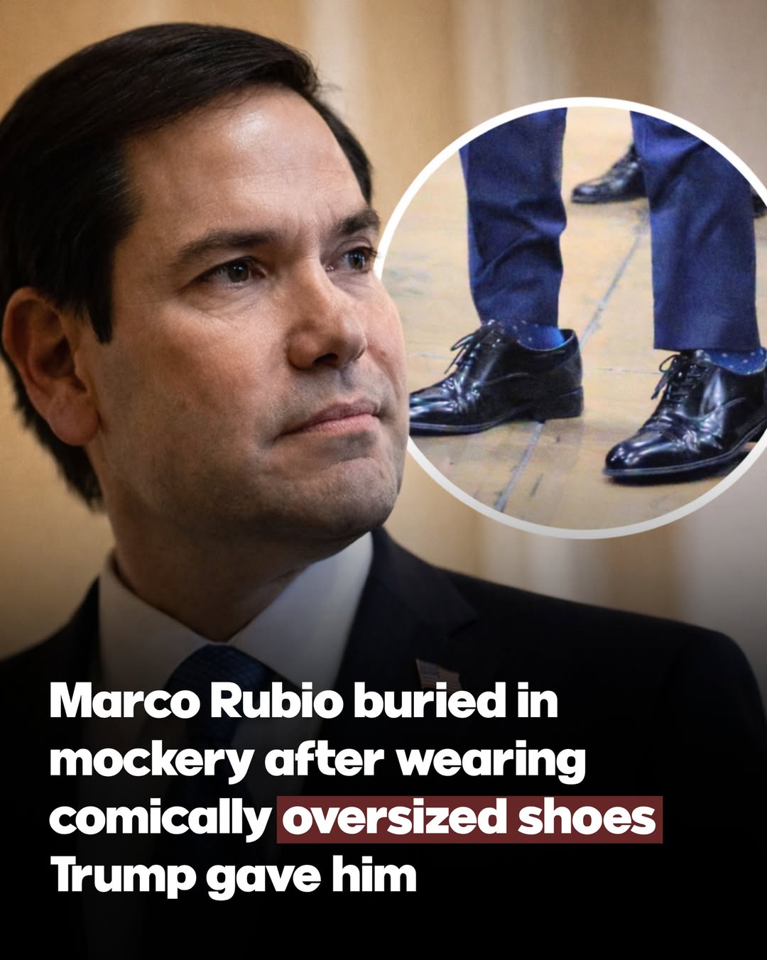 Photos of Marco Rubio recently went viral after he was seen wearing dress shoes that appeared noticeably too big.