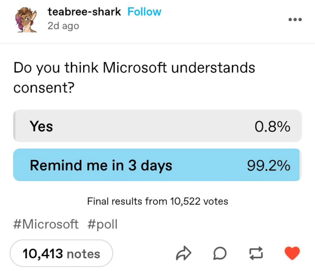 Do you think microslop understands consent?Do you think microslop understands consent?0 Comments 0 Shares 144K Views 0 Reviews