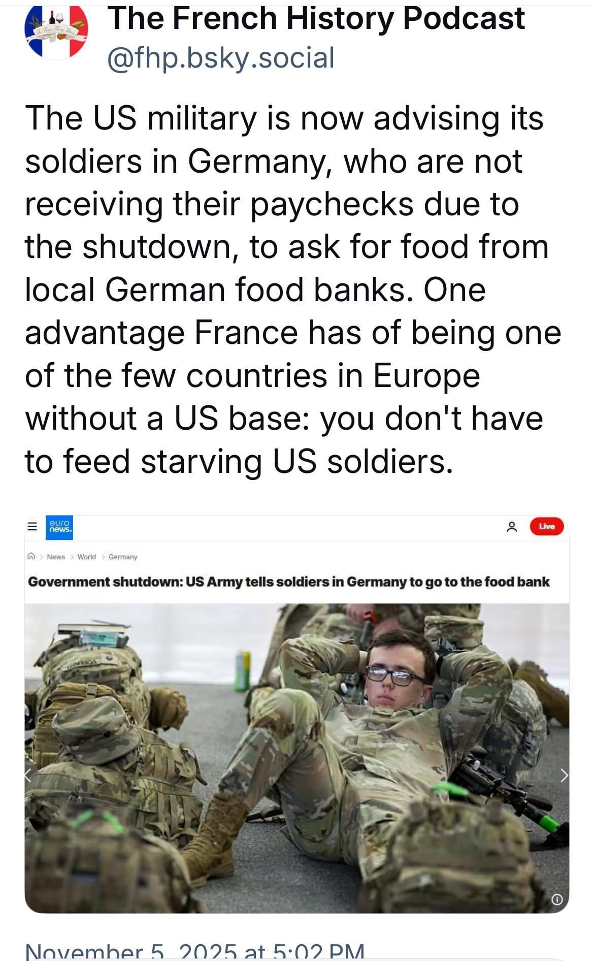 Imagine the embarrassment of being an unpaid US soldier in Europe now