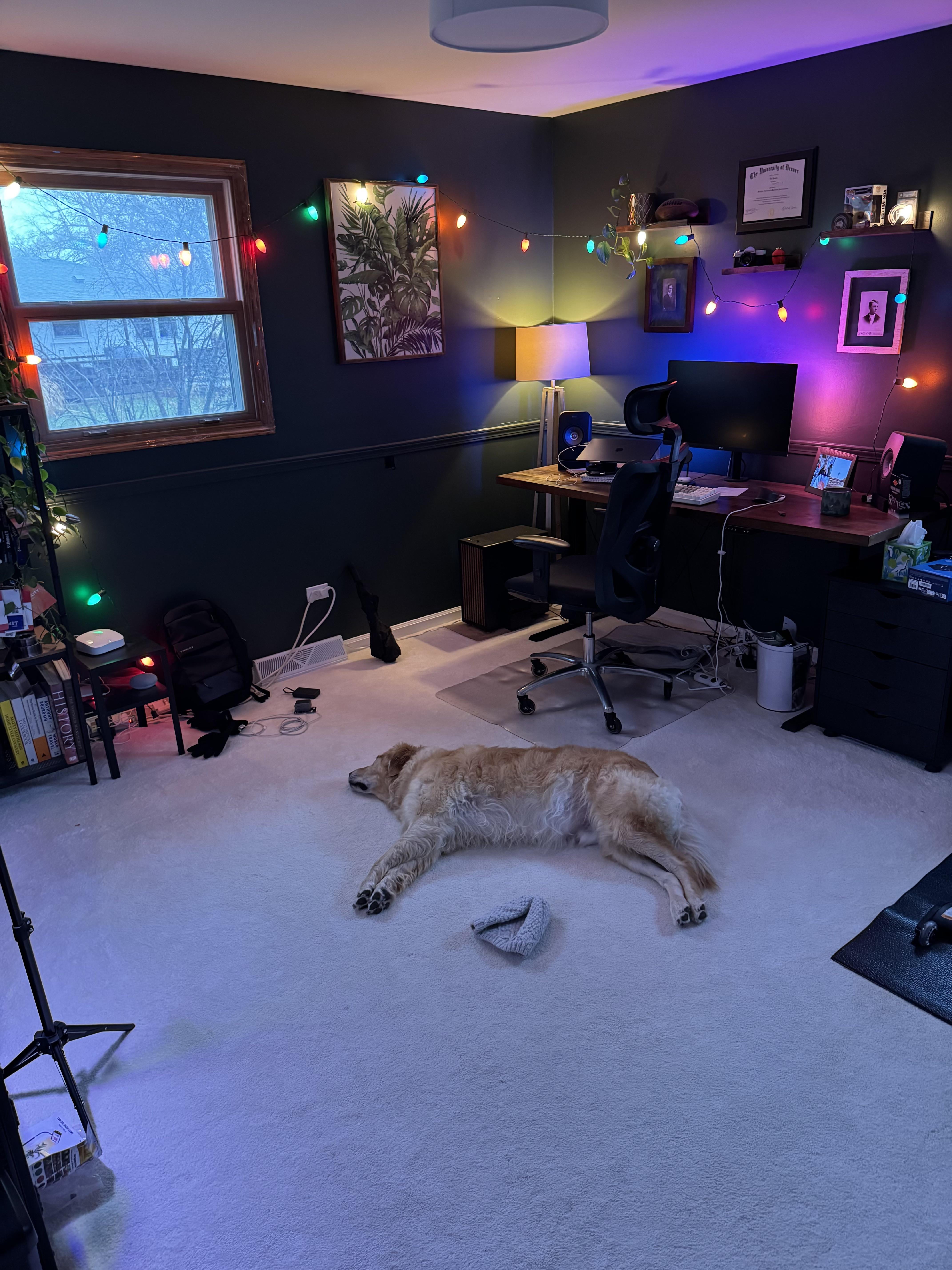 Hiding from the new puppy in my office