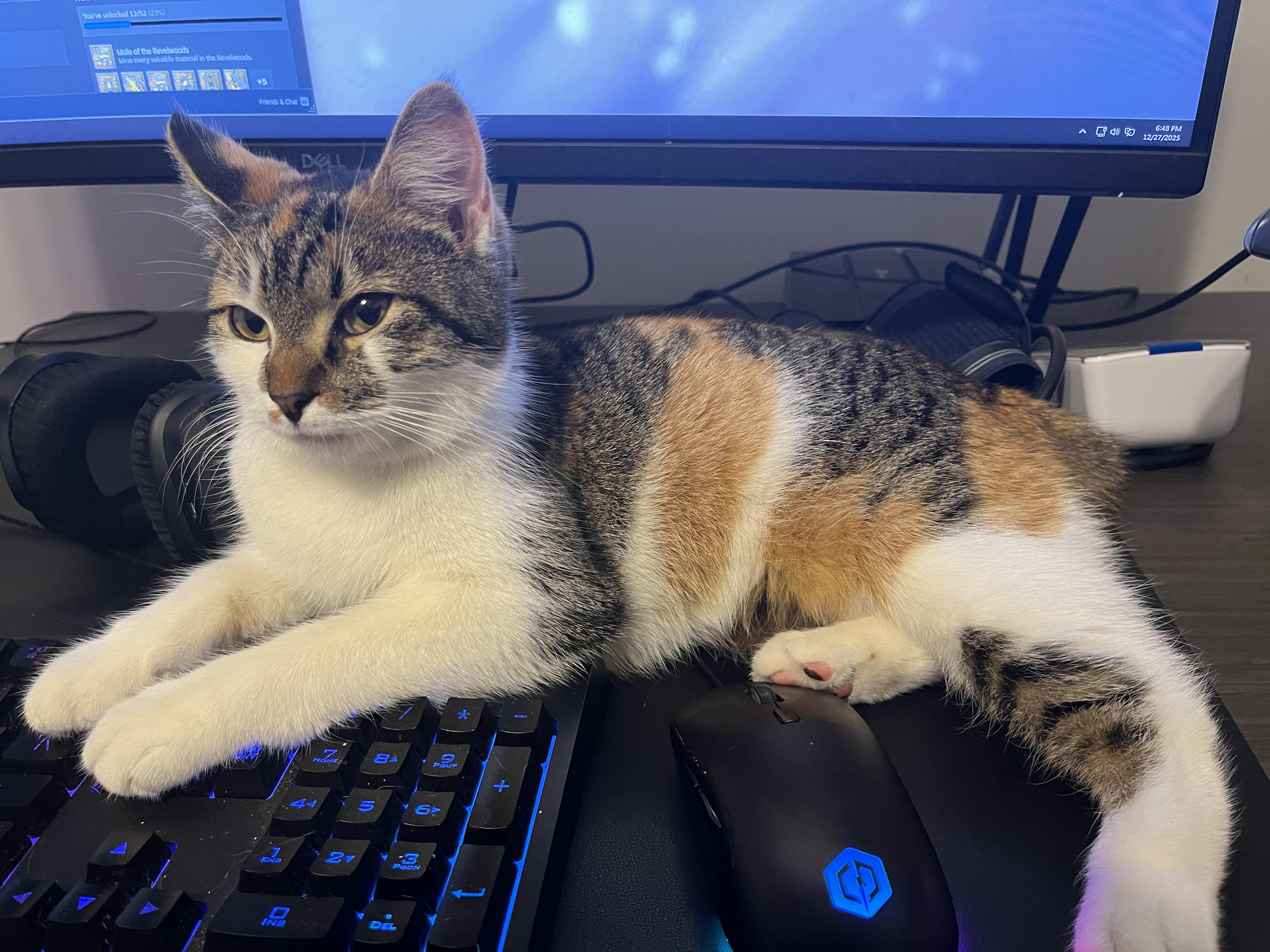 Foster Kitty decided the keyboard is the coziest spot (my 20th foster)
