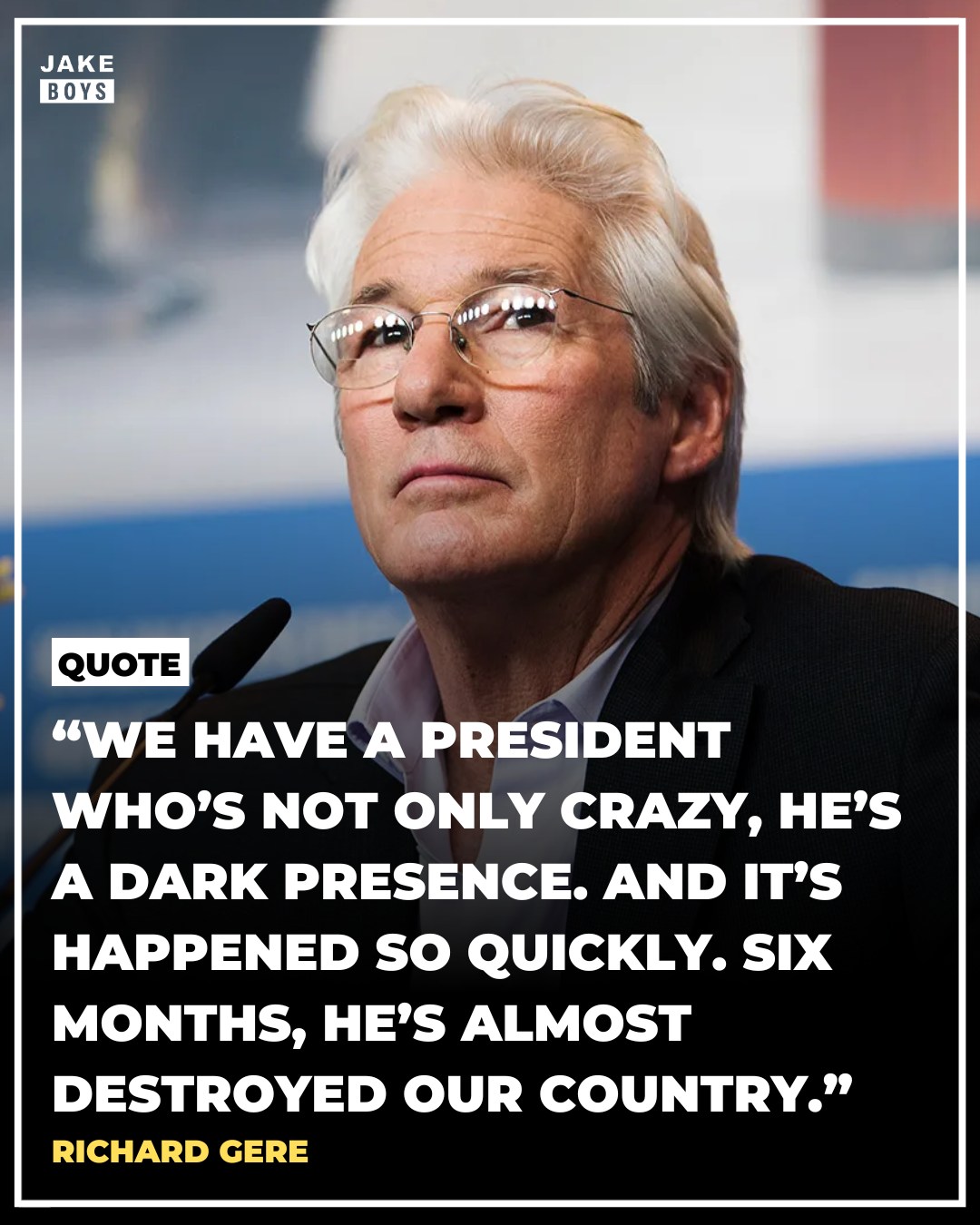 Speaking to a European outlet, Gere described Trump as a “dark presence” and warned that, in his view, the country has deteriorated rapidly under his leadership — saying it happened in just a matter of months.
