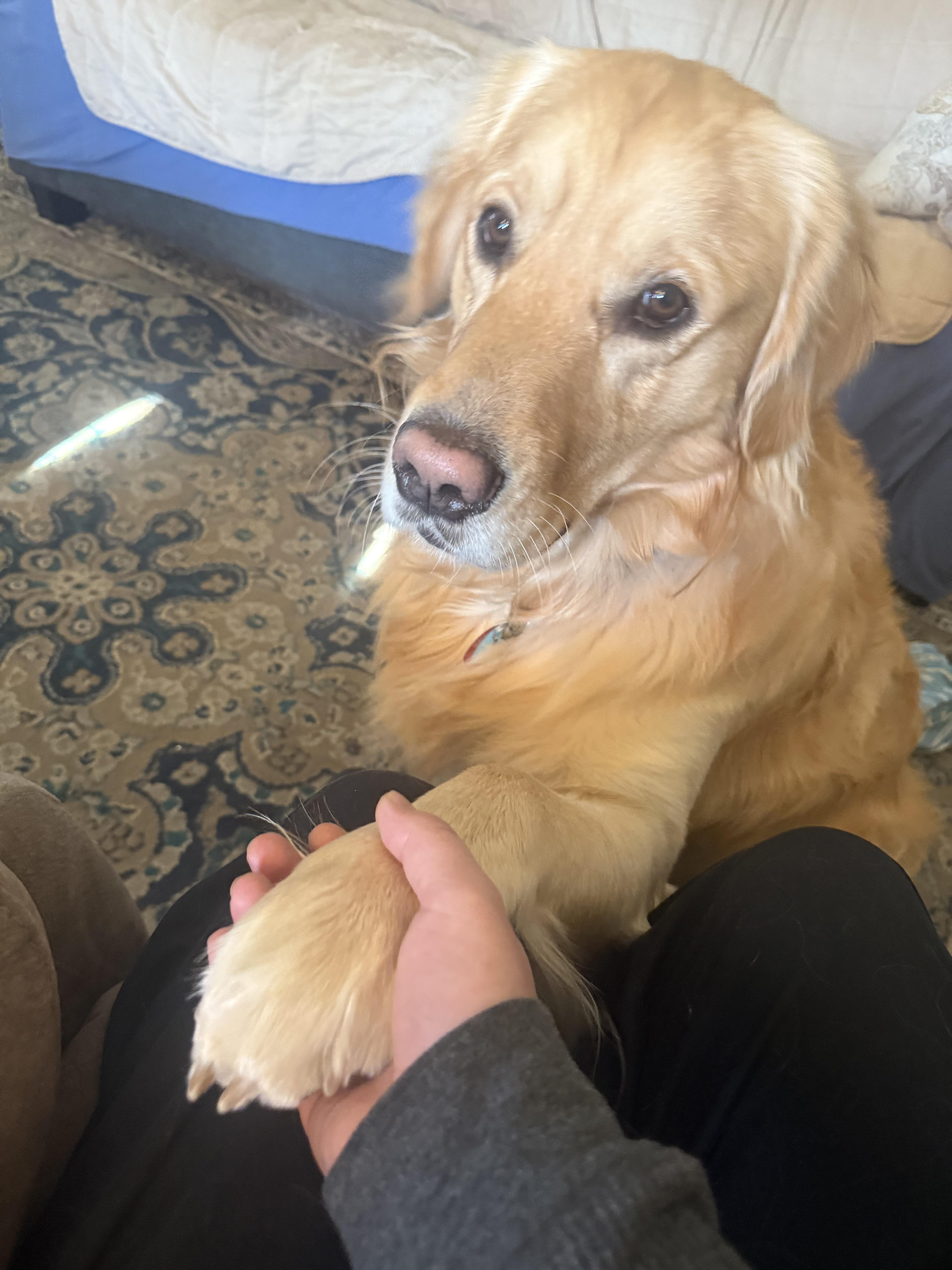 My adopted brother Loki likes to hold hands.