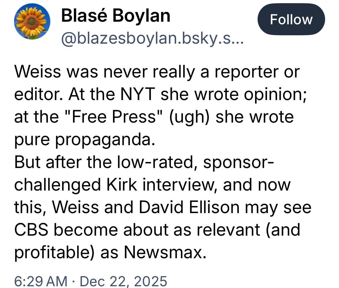 CBS knows Bari Weiss was never an actual journalist or editor but hired her anyway