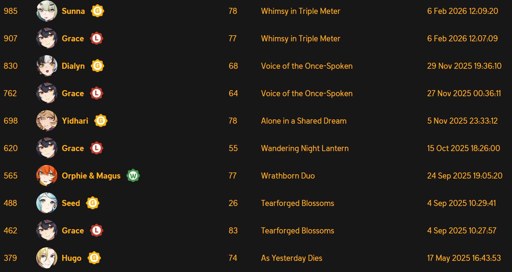 Lệch Grace 4 lần liên tiếp