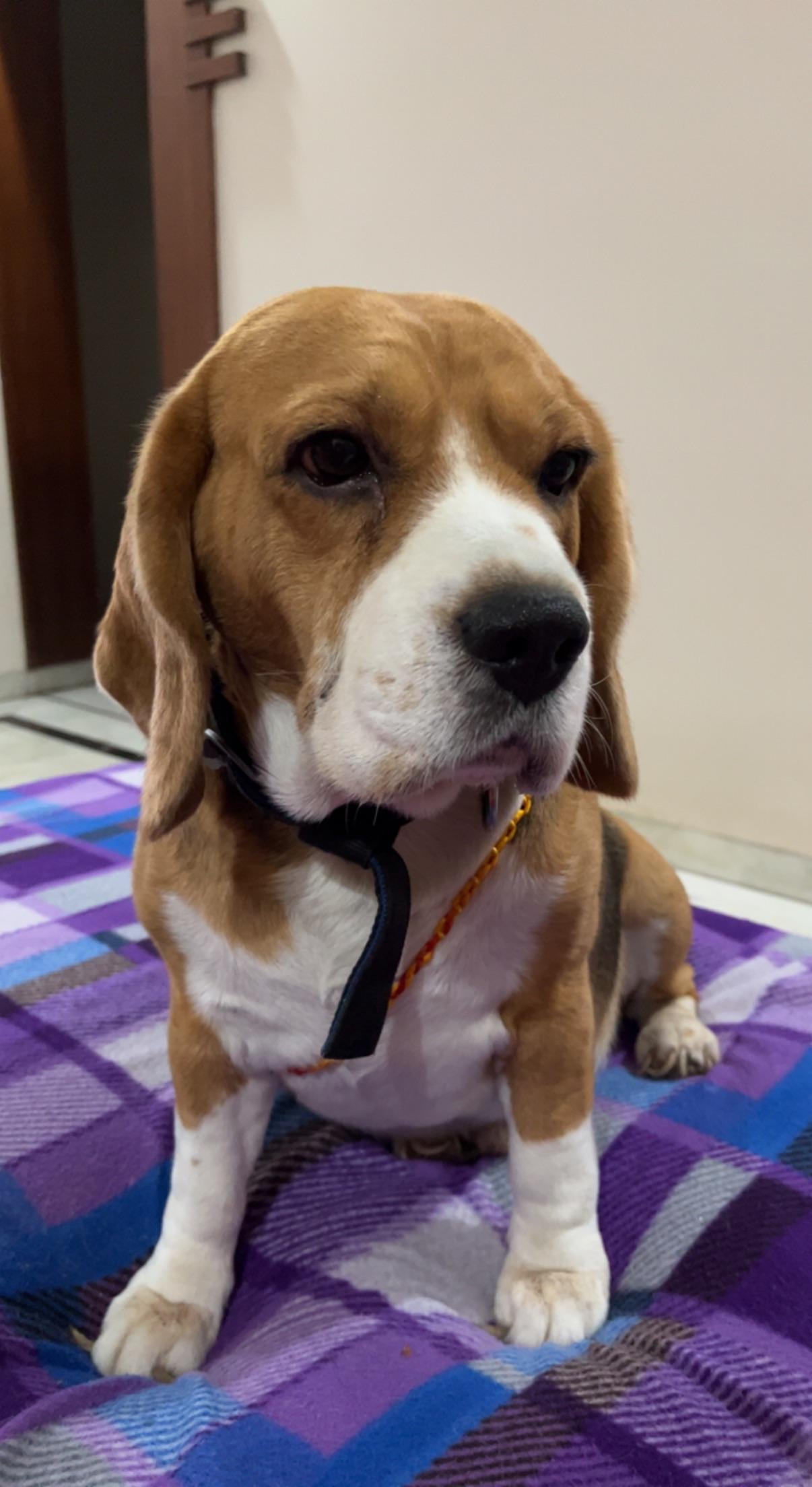 Looking deep in thought but the truth is he is thinking about his dinosaur toy and treats with gravy