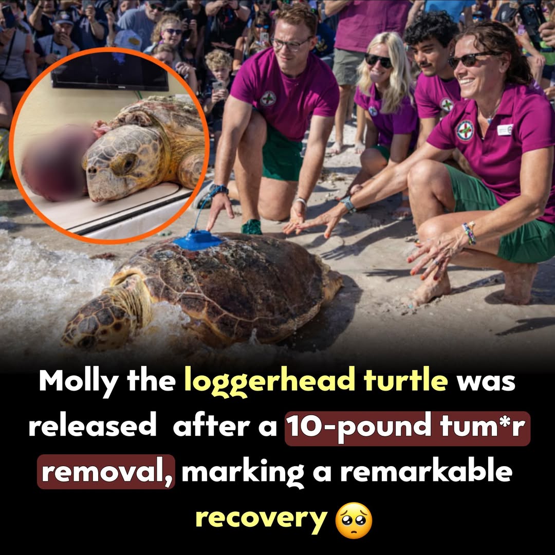 Her story shows how care, effort, and compassion can truly make a differenceMolly the loggerhead turtle is finally back where she belongs — the ocean When she was found, her condition was critical. A massive growth on her body made it extremely difficult for her to swim and survive in the wild. She was rescued and taken to a specialized care center, where experts carefully planned a complex procedure to remove it. The process required precision, patience, and constant monitoring. After the procedure, Molly spent months recovering. During this time, caregivers helped her regain strength, improve her movement, and return to normal swimming. Day by day, she grew stronger and more active, showing incredible resilience Loggerhead turtles travel vast distances across oceans, but challenges like this can disrupt their entire journey. Molly’s recovery became a symbol of hope and dedication in wildlife care. Finally, the big moment arrived. As she was released back into the sea, she swam away with strength and confidence, beginning a new chapter of her life. Her story shows how care, effort, and compassion can truly make a difference0 Comments 0 Shares 102 Views 0 Reviews