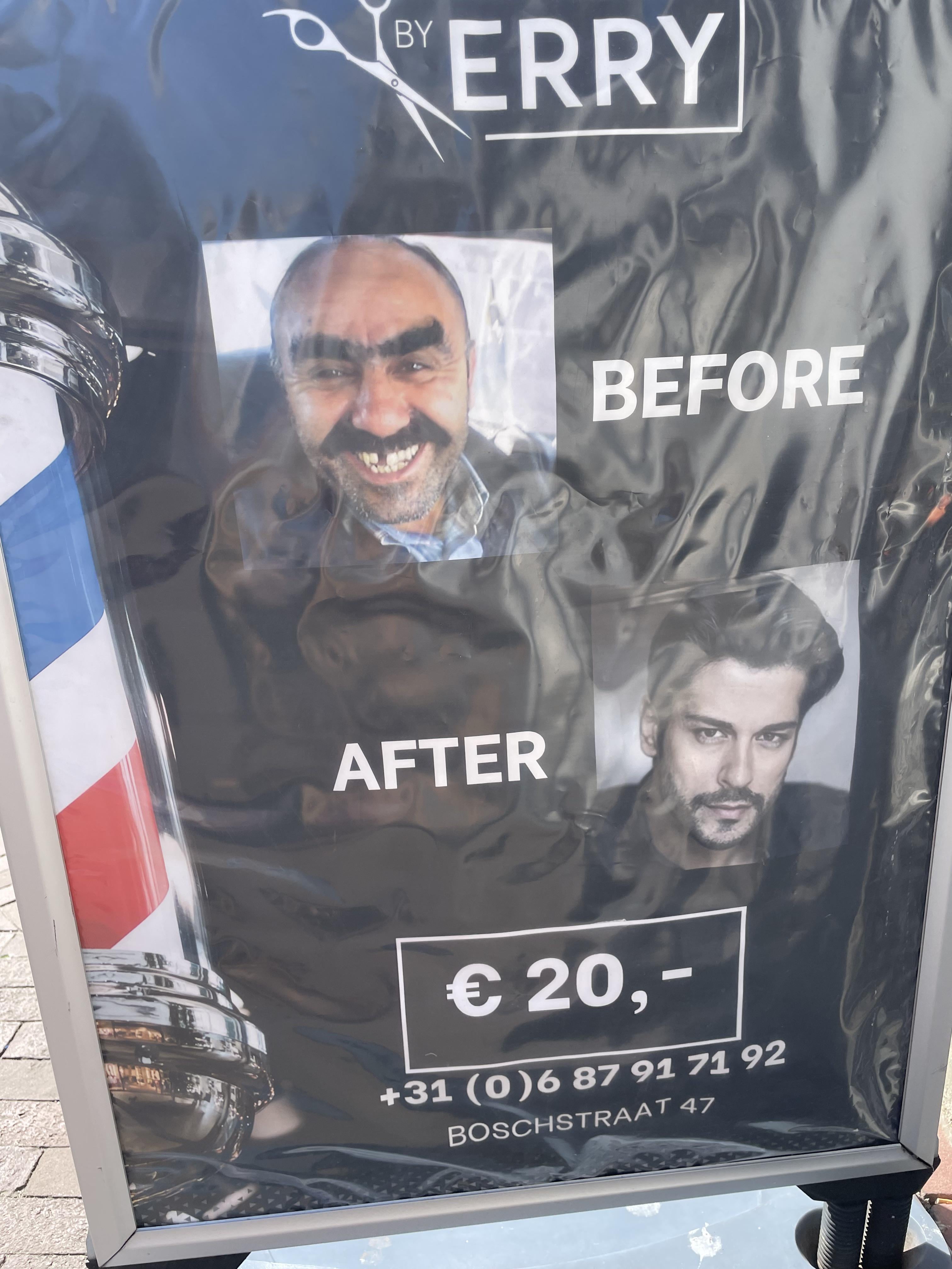 An ad for a barber in the Netherlands